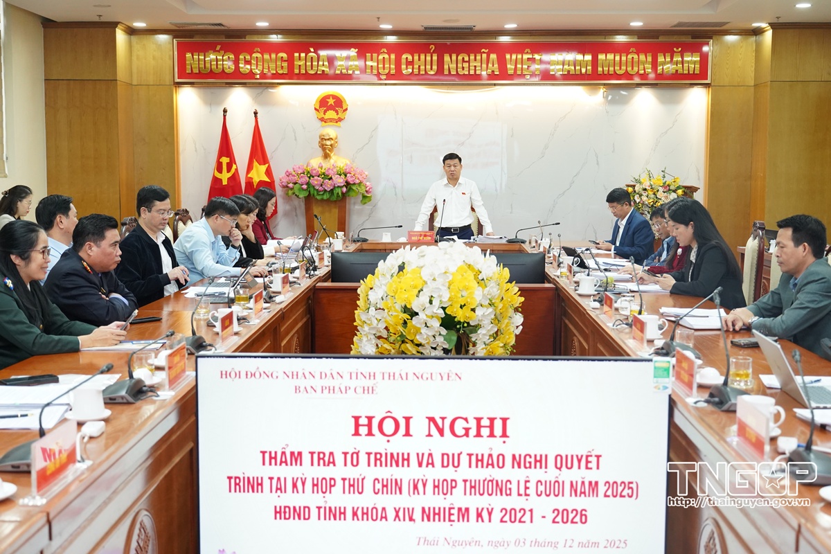 Sáng 3/12, Ban Pháp chế, HĐND tỉnh tổ chức Hội nghị thẩm tra các nội dung trình tại Kỳ họp thứ Chín (Kỳ họp thường lệ cuối năm 2025), HĐND tỉnh khóa XIV, nhiệm kỳ 2021 - 2026. Đồng chí Ngô Thế Hoàn, Trưởng Ban Pháp chế, HĐND tỉnh chủ trì Hội nghị. Dự Hội nghị có các đồng chí: Trần Thị Lộc, Phó Chủ tịch HĐND tỉnh; Nông Quang Nhất, Phó Chủ tịch UBND tỉnh; đại diện các Ban của HĐND tỉnh cùng các cơ quan, đơn vị liên quan.