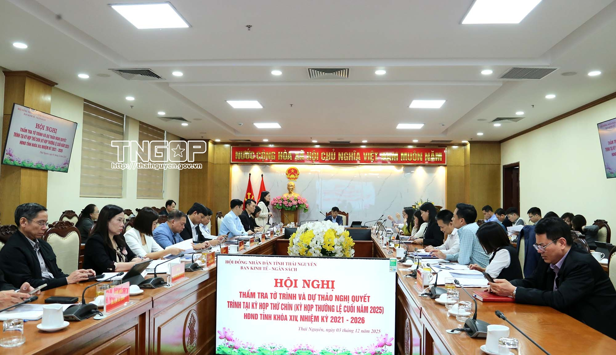 Chiều 3/12, Ban Kinh tế - Ngân sách, HĐND tỉnh tổ chức Hội nghị thẩm tra các tờ trình, dự thảo nghị quyết trình tại Kỳ họp thứ Chín (Kỳ họp thường lệ cuối năm), HĐND tỉnh khóa XIV, nhiệm kỳ 2021 - 2026. Dự Hội nghị có các đồng chí: Nguyễn Linh, Ủy viên Ban Thường vụ Tỉnh ủy, Phó Chủ tịch UBND tỉnh; Mai Thị Thúy Nga, Phó Chủ tịch HĐND tỉnh; lãnh đạo một số sở, ngành, đơn vị liên quan.