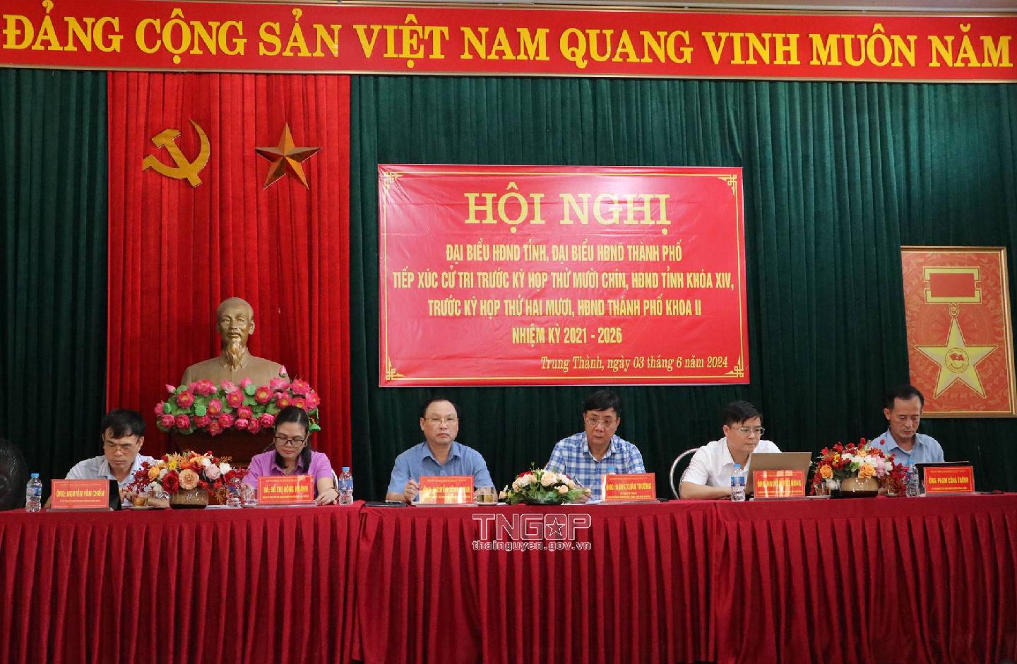 Tiếp tục chương trình tiếp xúc cử tri trước Kỳ họp thứ Mười chín, HĐND tỉnh khóa XIV, chiều 3/6, đồng chí Đặng Xuân Trường, Ủy viên BTV Tỉnh ủy, Phó Chủ tịch Thường trực UBND tỉnh cùng các đại biểu HĐND tỉnh và TP. Phổ Yên đã tiếp xúc với cử tri phường Trung Thành (TP. Phổ Yên).