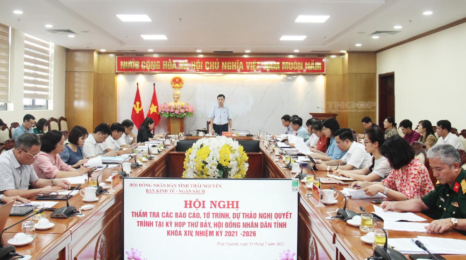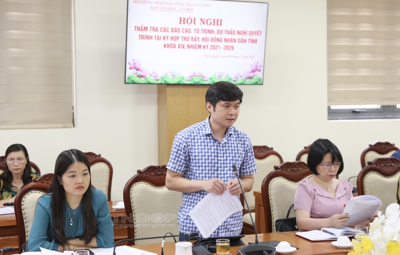 Ngày 6/7, Ban Kinh tế - Ngân sách và Ban Văn hóa - Xã hội, HĐND tỉnh đã tổ chức Hội nghị thẩm tra các báo cáo, tờ trình, dự thảo nghị quyết trình tại Kỳ họp thứ bảy, HĐND tỉnh Thái Nguyên khóa XIV, nhiệm kỳ 2021 - 2026.