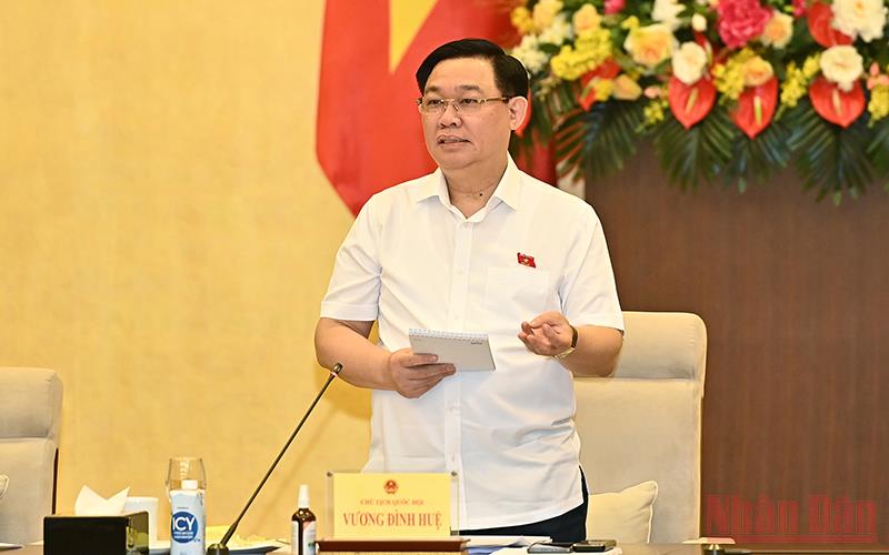 Sáng 6/7, tại Nhà Quốc hội, Chủ tịch Quốc hội Vương Đình Huệ chủ trì phiên họp bất thường của Ủy ban Thường vụ Quốc hội để xem xét, biểu quyết thông qua dự thảo Nghị quyết về mức thuế bảo vệ môi trường đối với xăng, dầu, mỡ nhờn.