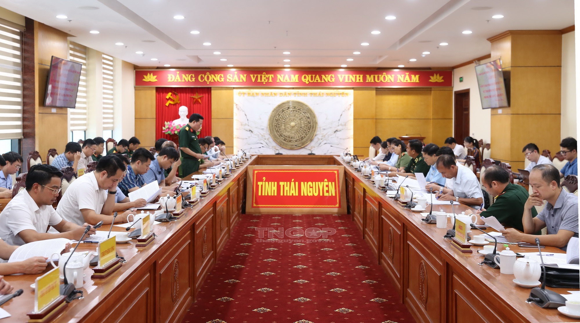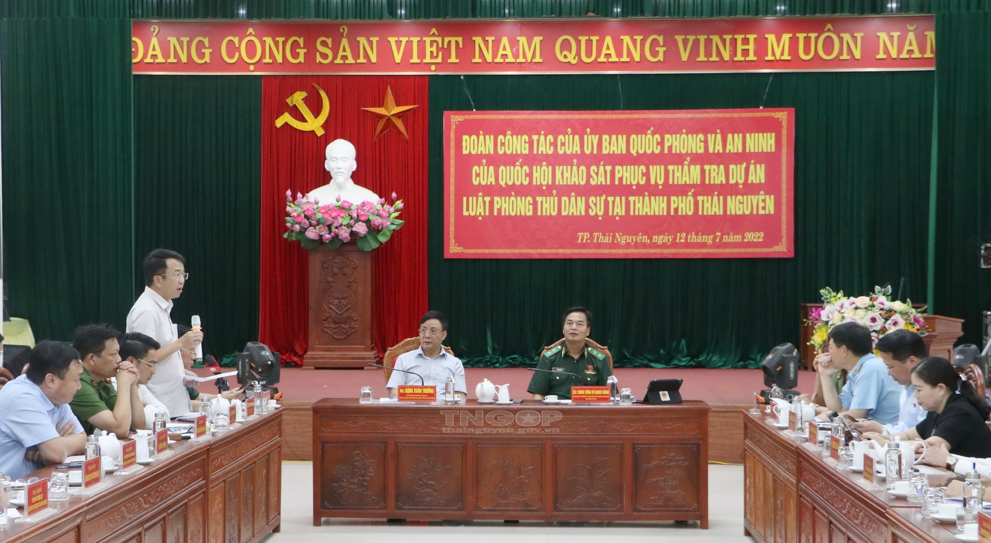 Tiếp tục chương trình khảo sát tại Thái Nguyên, chiều ngày 12/7, Đoàn khảo sát Ủy ban Quốc phòng và An ninh của Quốc hội do Trung tướng Đỗ Quang Thành, Phó Chủ nhiệm Ủy ban Quốc phòng và An ninh của Quốc hội làm Trưởng Đoàn đã làm việc với UBND tỉnh Thái Nguyên về tình hình thực hiện pháp luật phòng thủ dân sự ở địa phương.