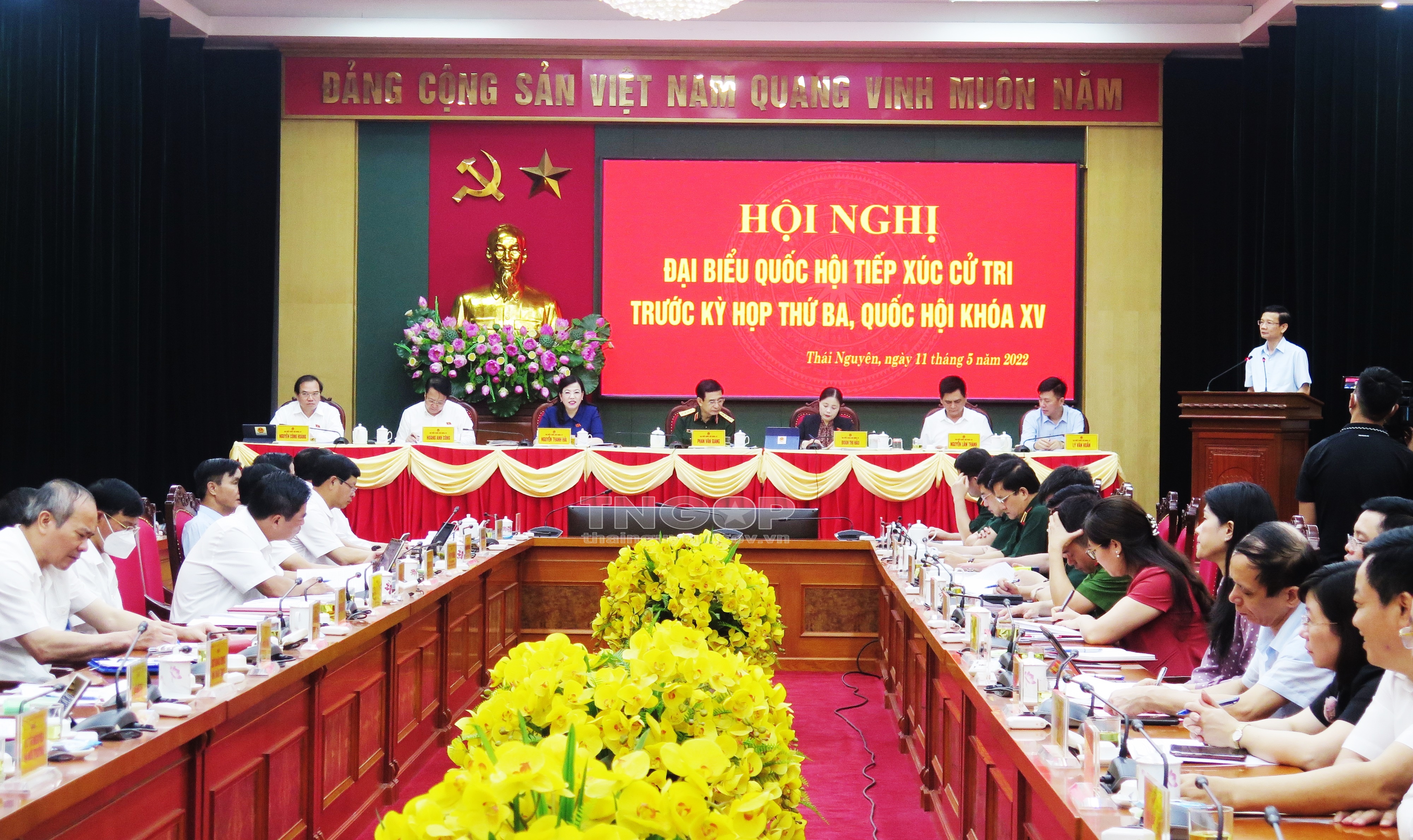 Ngày 11/5, Đại tướng Phan Văn Giang, Ủy viên Bộ Chính trị, Phó Bí thư Quân ủy Trung ương, Bộ trưởng Bộ Quốc phòng; đồng chí Nguyễn Thanh Hải, Ủy viên BCH Trung ương Đảng, Bí thư Tỉnh ủy, Trưởng Đoàn ĐBQH tỉnh Thái Nguyên và các ĐBQH tỉnh Thái Nguyên đã tiếp xúc cử tri trước Kỳ họp thứ ba, Quốc hội khóa XV theo hình thức trực tuyến tại điểm cầu Tỉnh ủy Thái Nguyên và điểm cầu 9 huyện, thành phố, 172 xã, phường, thị trấn với trên 6.300 cử tri tham dự.