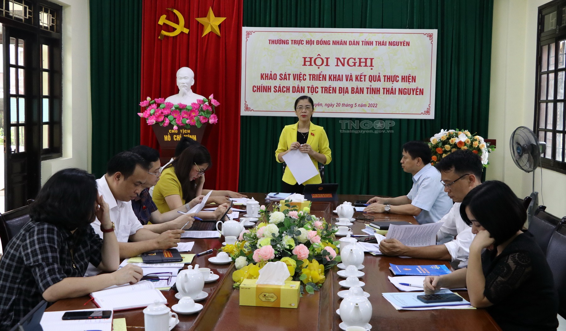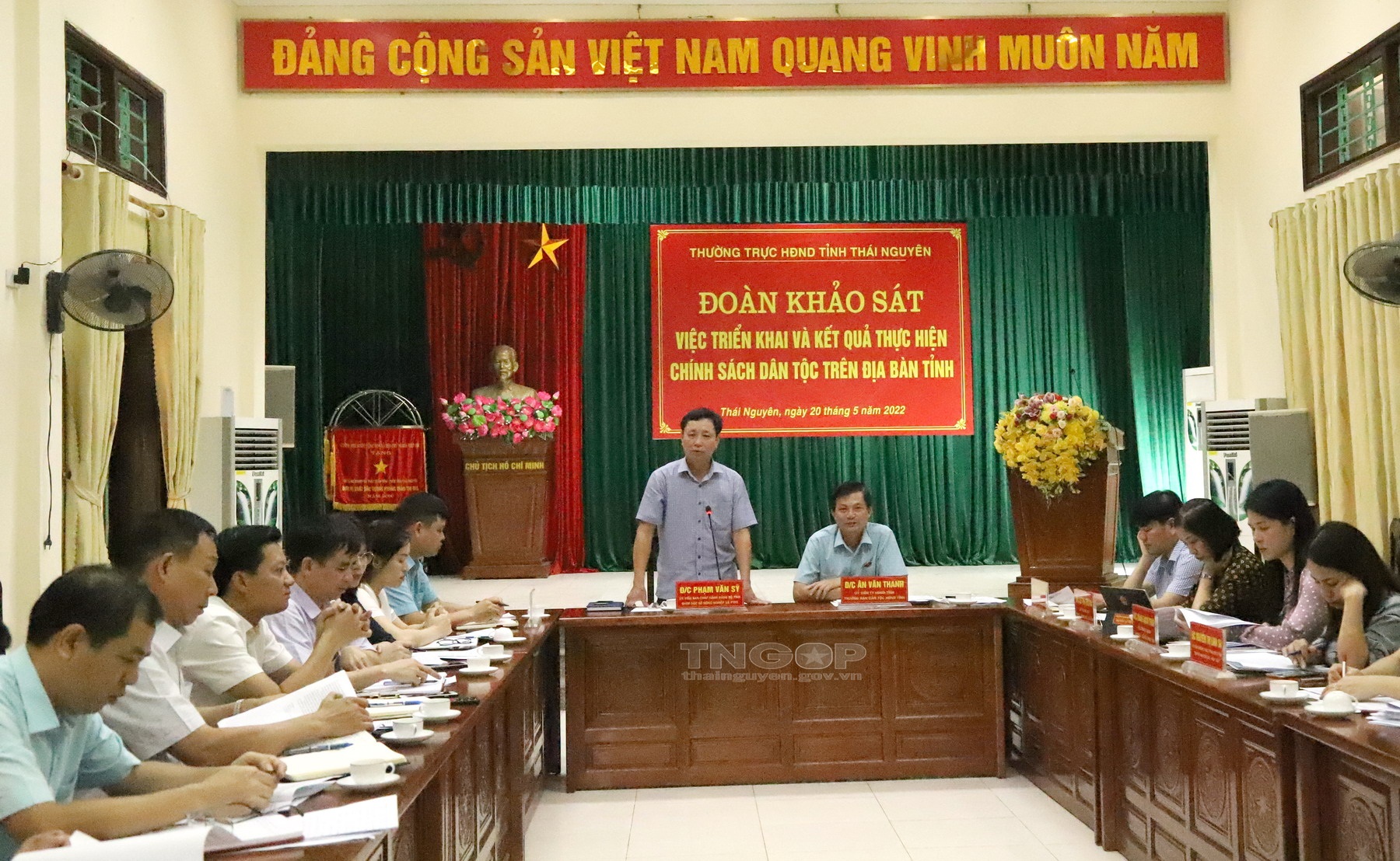 Tiếp tục chương trình khảo sát, ngày 19/5, Tổ công tác số 2 của HĐND tỉnh do đồng chí Ân Văn Thanh, Ủy viên Thường trực HĐND tỉnh, Trưởng Ban Dân tộc HĐND tỉnh làm Trưởng Đoàn đã khảo sát việc triển khai và kết quả thực hiện chính sách dân tộc trên địa bàn tỉnh Thái Nguyên giai đoạn 2016 - 2021 do Ban Dân tộc tỉnh Thái Nguyên triển khai. Tham gia Đoàn có lãnh đạo các Ban HĐND tỉnh.