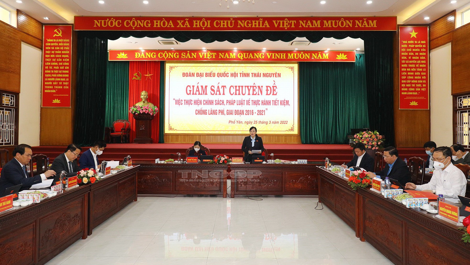 Sáng 25/3, Đoàn giám sát của Đoàn ĐBQH tỉnh Thái Nguyên do đồng chí Nguyễn Thanh Hải, Ủy viên BCH Trung ương Đảng, Bí thư Tỉnh ủy, Trưởng Đoàn ĐBQH tỉnh đã có buổi Giám sát chuyên đề “việc thực hành chính sách, pháp luật về thực hành tiết kiệm, chống lãng phí giai đoạn 2016 - 2021” tại UBND TX. Phổ Yên. Tham gia Đoàn giám sát có đồng chí Đặng Xuân Trường, Ủy viên BTV Tỉnh ủy, Phó Chủ tịch Thường trực UBND tỉnh; lãnh đạo Ủy ban MTTQ tỉnh và sở, ban, ngành liên quan.