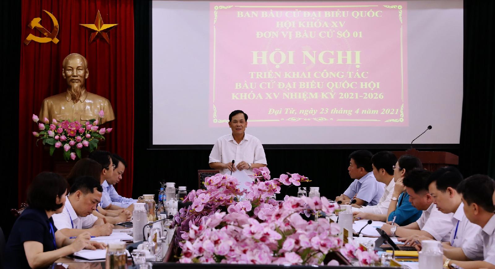Ngày 23/4, tại Huyện ủy Đại Từ, Ban bầu cử đại biểu Quốc hội khóa XV, đơn vị bầu cử số 01 (gọi tắt là đơn vị bầu cử số 01) tỉnh Thái Nguyên đã tổ chức Hội nghị triển khai công tác bầu cử đại biểu Quốc hội khóa XV, nhiệm kỳ 2021 - 2026. Đồng chí Hoàng Văn Hùng, Ủy viên Ban Thường vụ Tỉnh ủy, Chủ nhiệm Ủy ban Kiểm tra Tỉnh ủy, Trưởng Ban bầu cử chủ trì hội nghị.