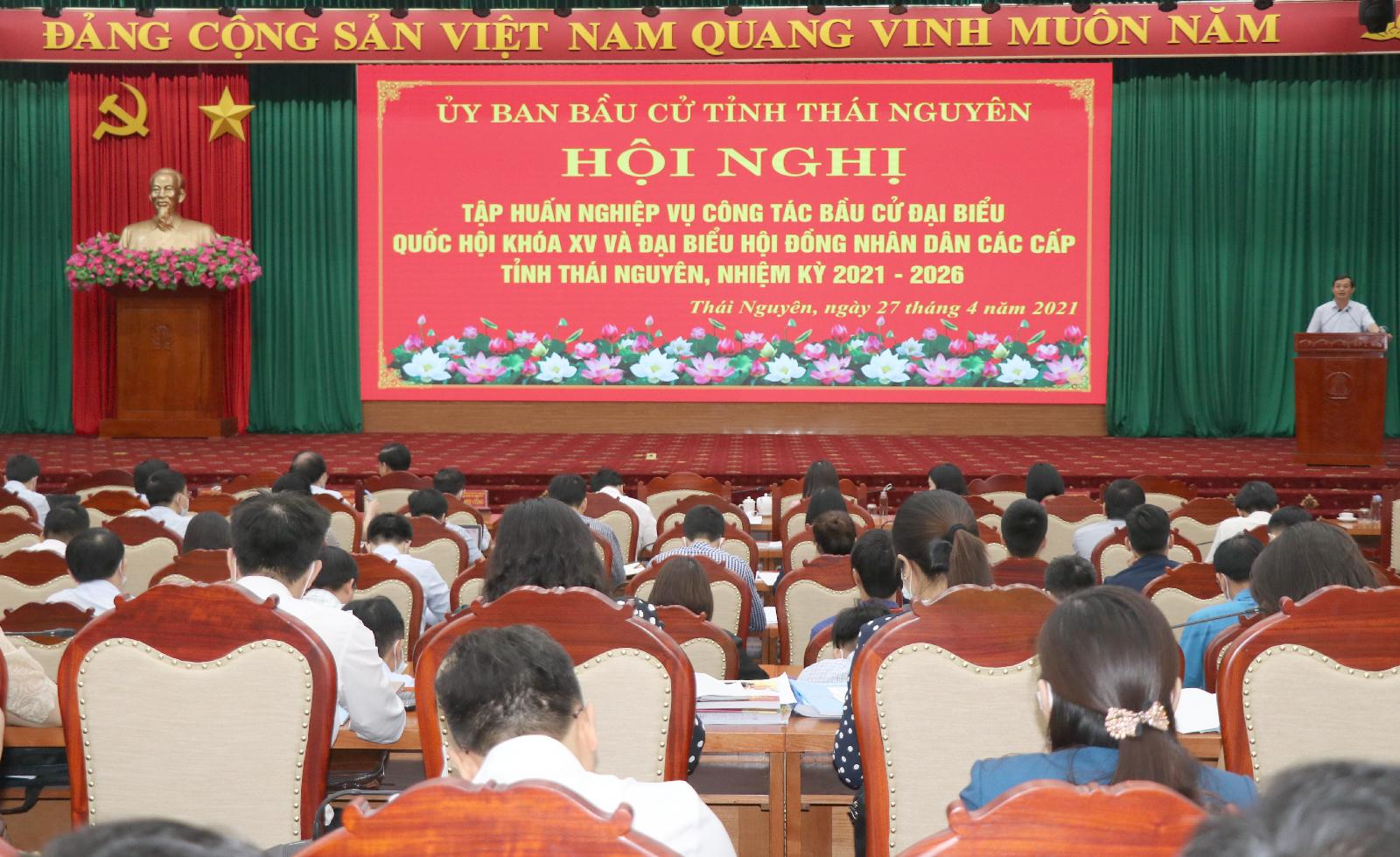 Ngày 27/4, tại hội trường UBND tỉnh, Ủy ban bầu cử tỉnh Thái Nguyên đã tổ chức Hội nghị tập huấn nghiệp vụ công tác bầu cử đại biểu Quốc hội khóa XV và đại biểu HĐND các cấp tỉnh Thái Nguyên, nhiệm kỳ 2021 - 2026. Đồng chí Phạm Hoàng Sơn, Phó Bí thư Thường trực Tỉnh ủy, Chủ tịch HĐND tỉnh, Chủ tịch Ủy ban bầu cử tỉnh dự và phát biểu chỉ đạo hội nghị.