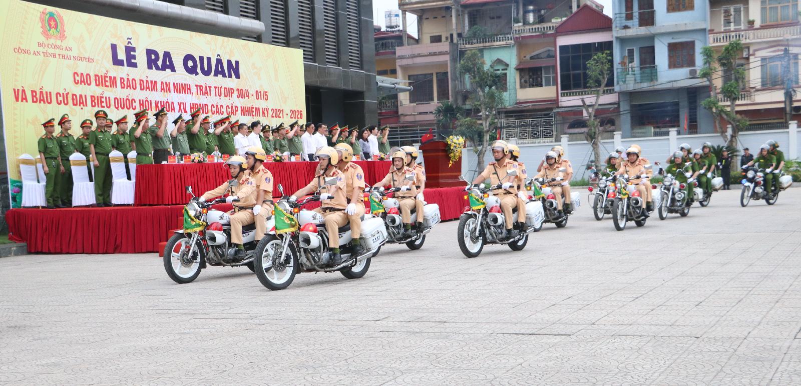 Ngày 28/4, Công an tỉnh Thái Nguyên tổ chức Lễ ra quân cao điểm bảo đảm an ninh, trật tự dịp 30/4 - 1/5 và bầu cử đại biểu Quốc hội khóa XV, đại biểu HĐND các cấp nhiệm kỳ 2021 - 2026. Dự Lễ ra quân có các đồng chí: Đặng Xuân Trường, Ủy viên Ban Thường vụ Tỉnh ủy, Phó Chủ tịch Thường trực UBND tỉnh; Đại tá Bùi Đức Hải, Ủy viên Ban Thường vụ Tỉnh ủy, Giám đốc Công an tỉnh; lãnh đạo Công an tỉnh và một số sở, ban, ngành của tỉnh.