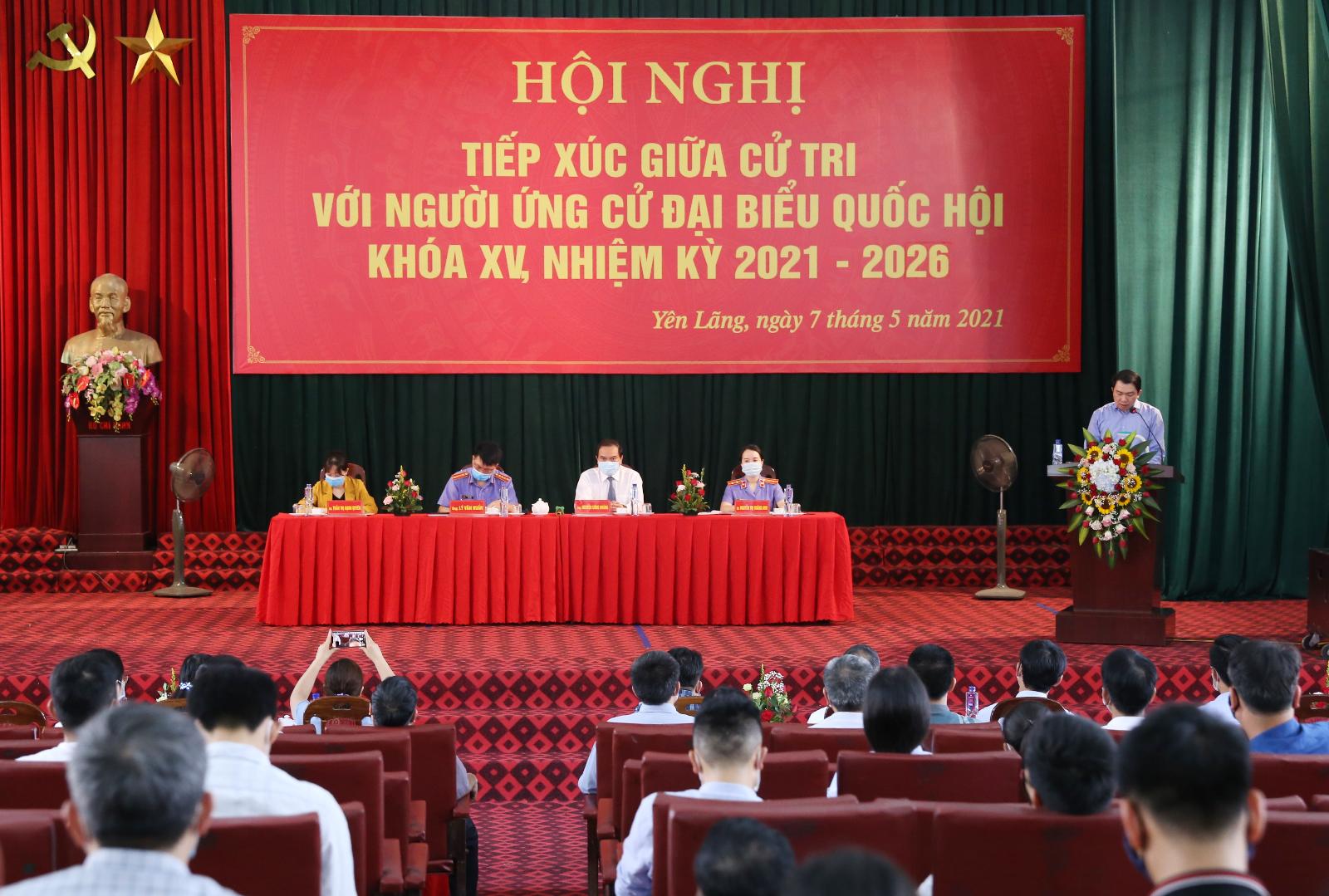 Hội nghị tiếp xúc giữa cử tri với người ứng cử đại biểu Quốc hội khóa XV, nhiệm kỳ 2021 - 2026, tại Đơn vị bầu cử số 1
