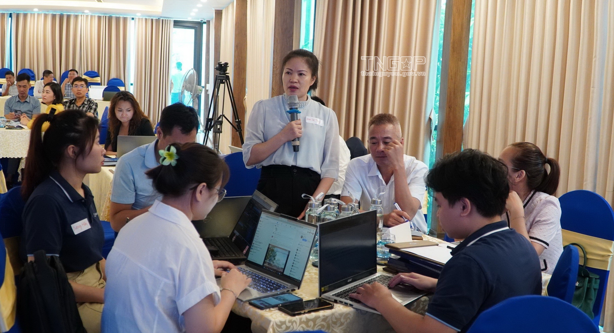 Bà Trần Thị Thúy, Giám đốc Công ty Du lịch, dịch vụ việc làm Đồng Hỷ thảo luận trong chương trình đào tạo về chuyển đổi số do Sở Khoa học và Công nghệ tổ chức