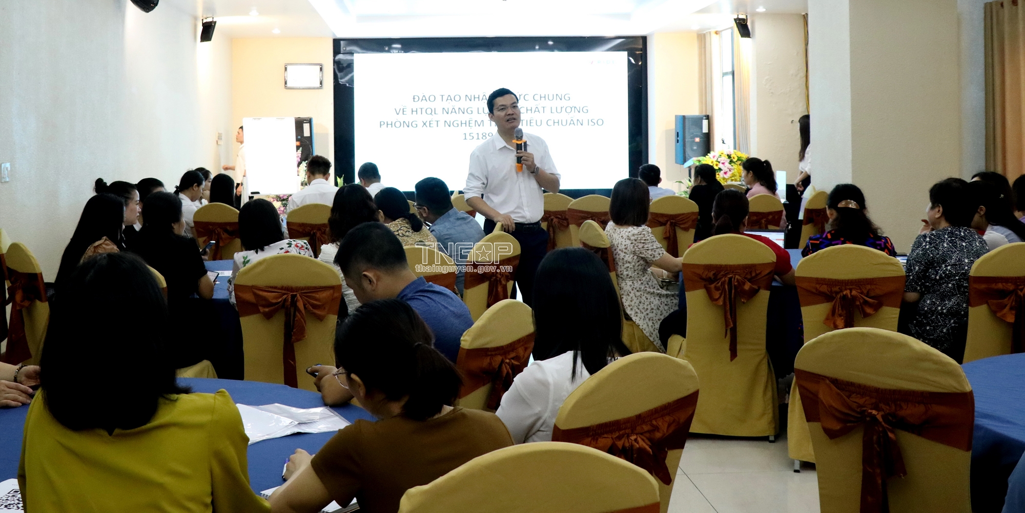 Đại diện Viện Nghiên cứu tổ chức và Kinh tế số hướng dẫn các kiến thức về chuyển đổi số cho các cán bộ, nhân viên của các cơ quan quản lý nhà nước, các cơ sở khám bệnh, chữa bệnh trên địa bàn tỉnh Thái Nguyên