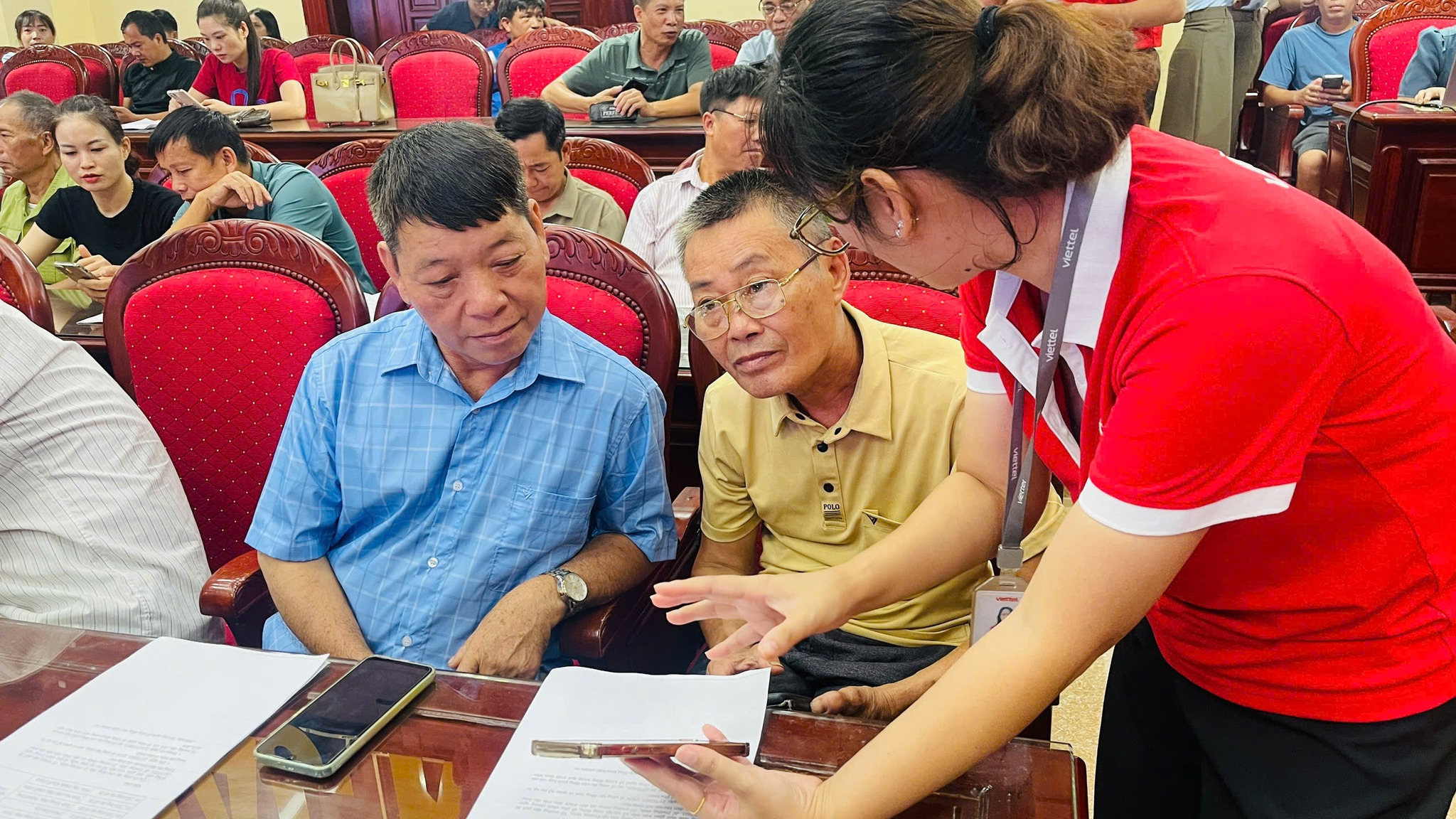 Người dân phường Bắc Kạn được hướng dẫn cài đặt các ứng dụng trên điện thoại