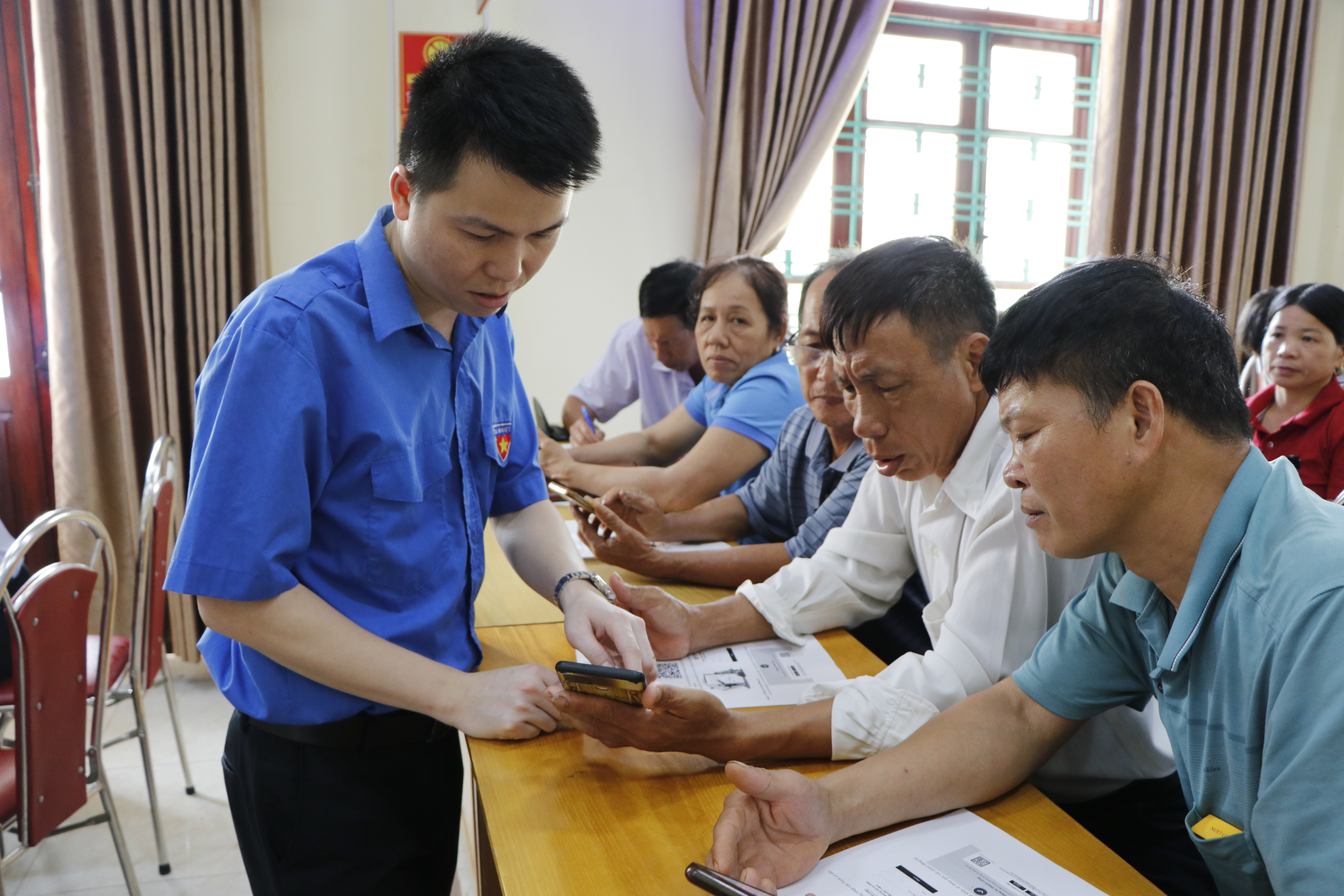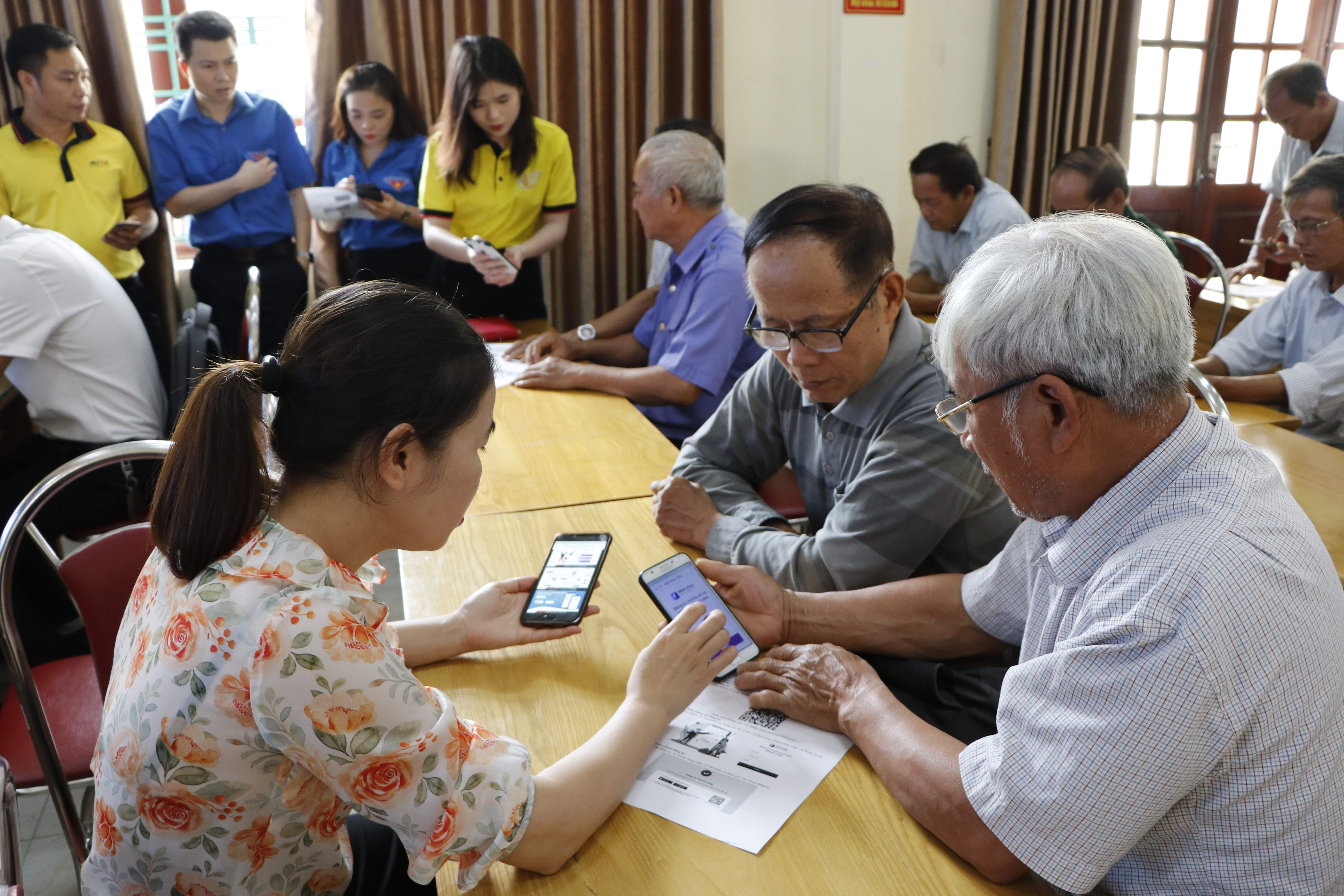 Thành viên Tổ công nghệ số cộng đồng hỗ trợ người dân cài đặt ứng dụng số (ảnh minh họa)