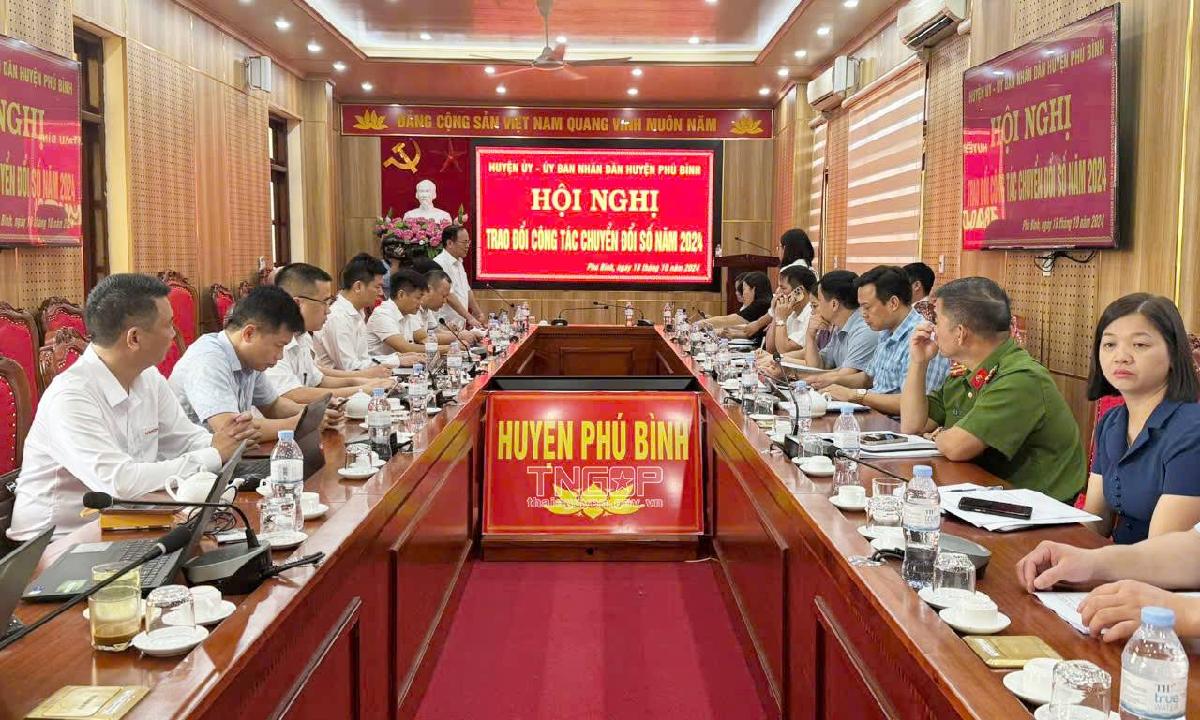 Ngày 18/10, Huyện ủy - UBND huyện Phú Bình tổ chức Hội nghị trao đổi công tác chuyển đổi số năm 2024. Dự Hội nghị có các đồng chí: Nguyễn Thị Loan, Bí thư Huyện ủy Phú Bình; Đỗ Xuân Hòa, Giám đốc Sở Thông tin và Truyền thông; Thượng tá Đặng Anh Tuấn, Giám đốc Vietel Thái Nguyên.