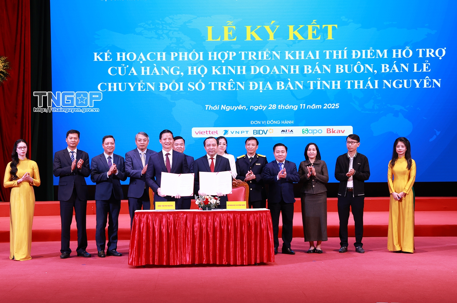 Chiều 28/11, tại Trung tâm Văn hóa tỉnh Thái Nguyên, Bộ Khoa học và Công nghệ (KH&CN) phối hợp với Bộ Công Thương, UBND tỉnh Thái Nguyên tổ chức Hội nghị ký kết thỏa thuận hợp tác triển khai thí điểm hỗ trợ cửa hàng, hộ kinh doanh bán buôn, bán lẻ chuyển đổi số trên địa bàn tỉnh Thái Nguyên.