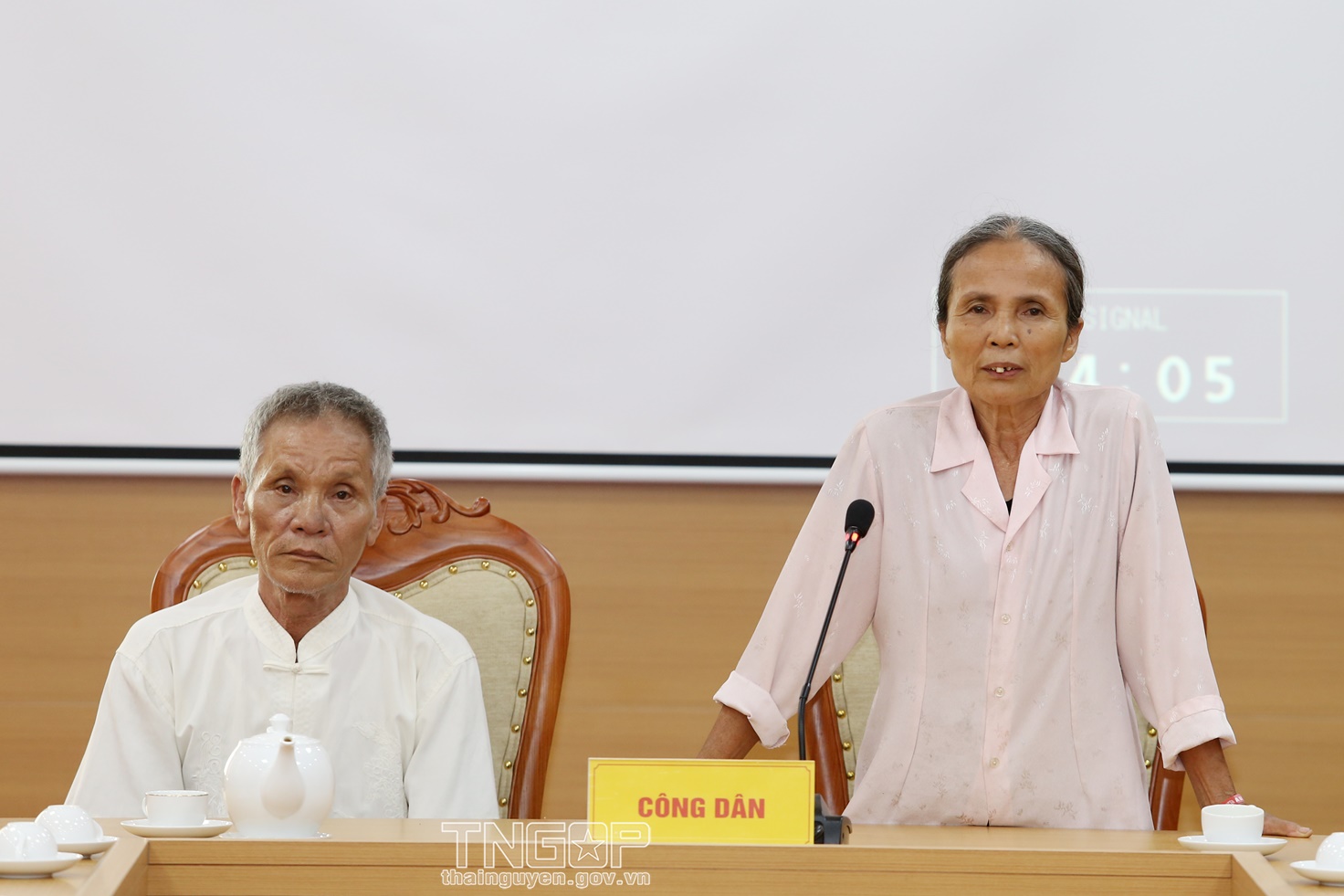 Bà Dương Thị Liêm (vợ ông Nguyễn Viết Thu), xóm Hòa Bình, xã Xuân Phương, huyện Phú Bình (nay là xã Phú Bình, tỉnh Thái Nguyên) trình bày ý kiến với đồng chí Bí Thư Tỉnh ủy tại buổi tiếp công dân