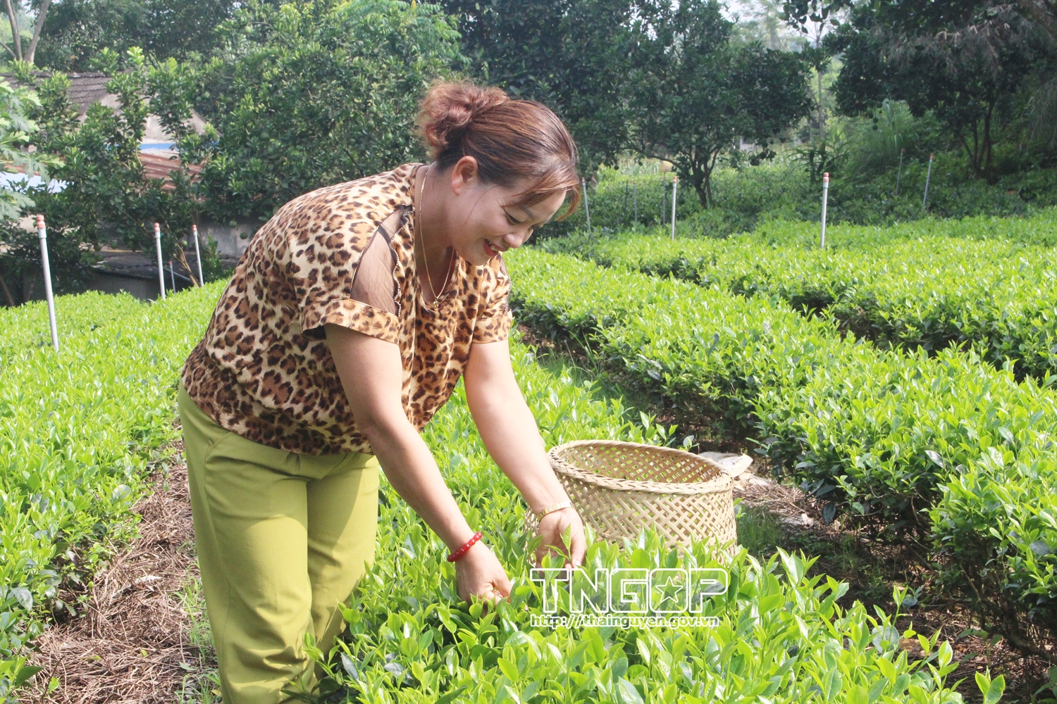 Không chỉ nói suông, năm 2017, chị đứng ra thành lập Tổ sản xuất chè VietGAP, tập hợp những hộ dân tâm huyết cùng hướng đến mục tiêu xây dựng thương hiệu chè sạch. Chị trực tiếp hướng dẫn kỹ thuật canh tác an toàn, vận động bà con chuyển sang sử dụng chế phẩm sinh học, phân hữu cơ để chăm sóc cây chè. Từ sự nỗ lực không ngừng, đến nay đã có 15 ha chè trong tổng số 30 ha chè kinh doanh của xóm Trung Thành 2 được chứng nhận VietGAP, 7 ha có mã số vùng trồng và 5 ha đang được chuyển đổi theo hướng hữu cơ.