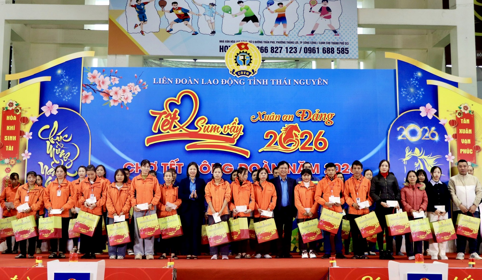 Thực hiện Kế hoạch của Tổng Liên đoàn Lao động Việt Nam về tổ chức các hoạt động chăm lo cho đoàn viên, người lao động nhân dịp tết Nguyên đán Bính Ngọ 2026, Liên đoàn Lao động tỉnh Thái Nguyên sẽ tổ chức chương trình “Chợ Tết Công đoàn năm 2026” tại 3 địa điểm, gồm: Siêu thị GO! Thái Nguyên, Nhà Văn hóa Lao động tỉnh Thái Nguyên (Trung tâm Tư vấn và Hỗ trợ người lao động - phường Sông Công), Phố đi bộ Sông Cầu (phường Bắc Kạn).