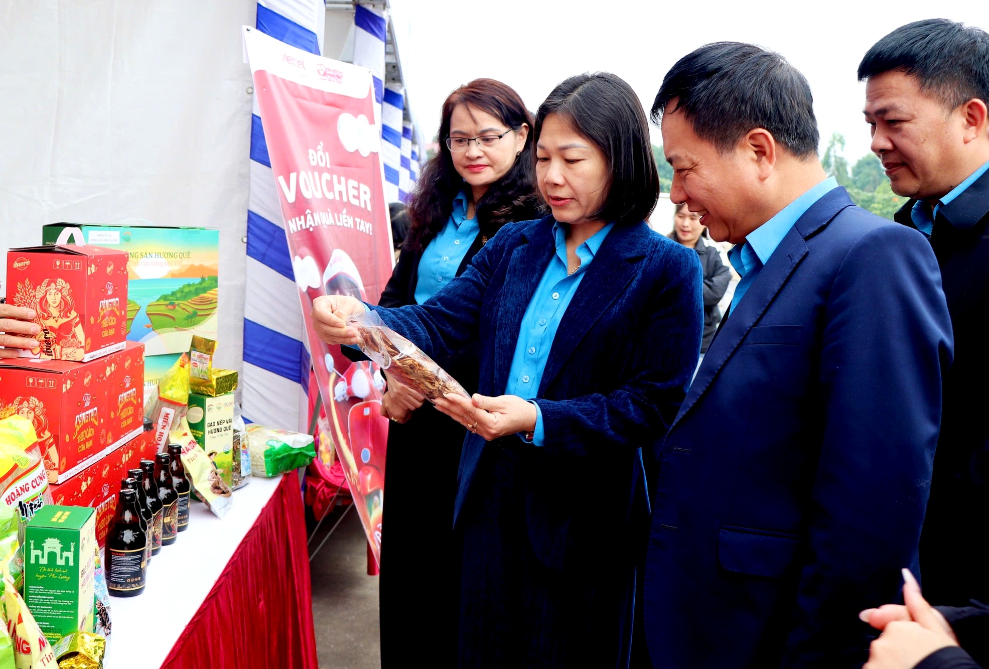 Các đại biểu tham quan gian hàng tại Chợ Tết Công đoàn năm 2026
