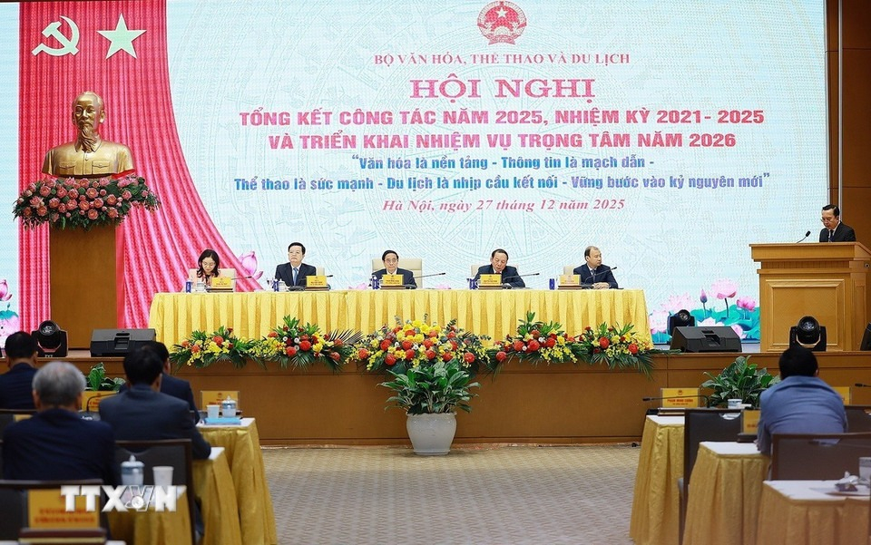 Phát biểu chỉ đạo, Thủ tướng Chính phủ Phạm Minh Chính ghi nhận và đánh giá cao sự nỗ lực của toàn ngành VHTT&DL trong năm 2025 và cả giai đoạn 2021 - 2025, góp phần cùng cả nước vượt qua khó khăn, thách thức, hoàn thành các mục tiêu phát triển kinh tế - xã hội. Về nhiệm vụ trong thời gian tới, Thủ tướng đề nghị ngành VHTT&DL tiếp tục khẳng định vị thế, góp phần gia tăng “sức mạnh mềm” quốc gia, phát huy nguồn lực văn hóa; đổi mới quan điểm, mục tiêu, phương pháp quản lý toàn diện xuất phát từ Nhân dân, phục vụ Nhân dân, lấy Nhân dân làm trung tâm với cốt lõi là bảo đảm các quyền của con người, quyền và nghĩa vụ của công dân liên quan đến ngành. Cùng với đó, đổi mới tư duy, hành động quyết liệt, về đích cũng phải thực chất. Các lĩnh vực truyền thông cần phải được lan tỏa mạnh, hoạt động thể thao phải vươn tầm, du lịch phải đột phá; tiếp tục hoàn thiện thể chế, cơ chế, chính sách - nguồn lực cho sự phát triển của ngành; hoàn thiện việc sắp xếp, tinh gọn tổ chức bộ máy, ổn định, hoạt động thông suốt, hiệu lực, hiệu quả ngay, không làm gián đoạn công việc và các hoạt động bình thường khác; tập trung phát triển nền văn hóa tiên tiến đậm đà bản sắc dân tộc…