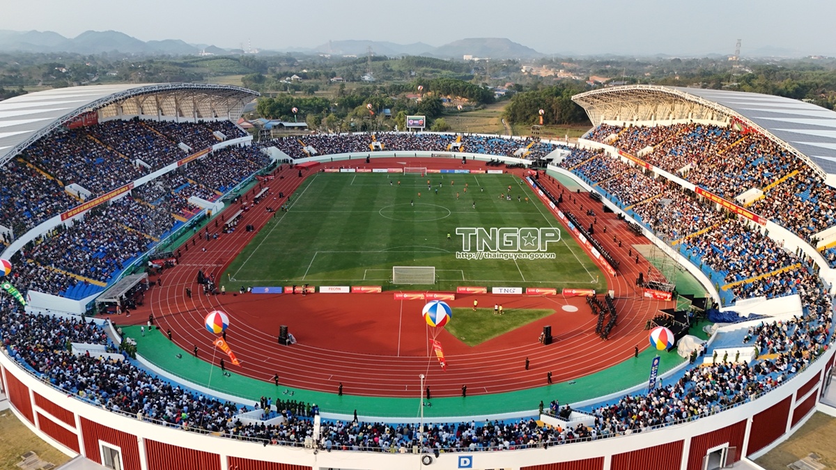 Năm 2025 cũng đánh dấu bước chuyển mình và phát triển rực rỡ của du lịch thể thaoThái Nguyên, khi tỉnh đã tổ chức và phối hợp tổ chức nhiều sự kiện thể thao lớn, thu hút hàng vạn du khách tham gia (Trong ảnh: Đông đảo Nhân dân và du khách tham dự Giải bóng đá Tứ hùng - Thái Nguyên năm 2025)