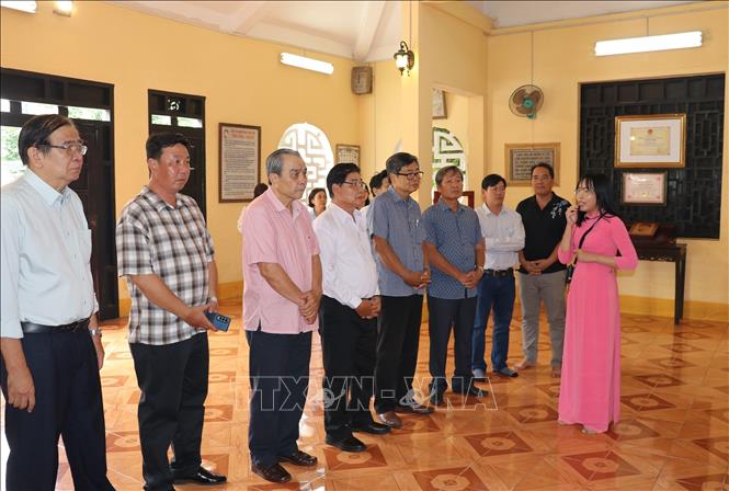 Khách du lịch nghe thuyết minh về cuộc đời và sự nghiệp của Anh hùng dân tộc Trương Định tại phường Gò Công, tỉnh Đồng Tháp.