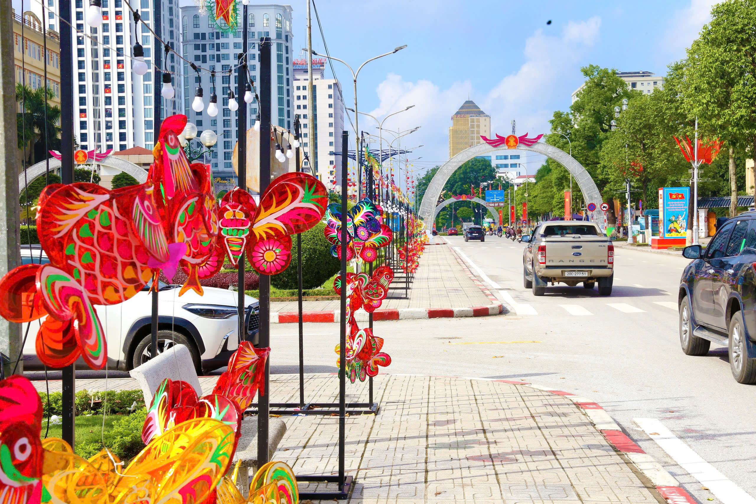 Đường phố trên địa bàn phường Phan Đình Phùng được trang hoàng rực rỡ (Ảnh: Thành Chung)