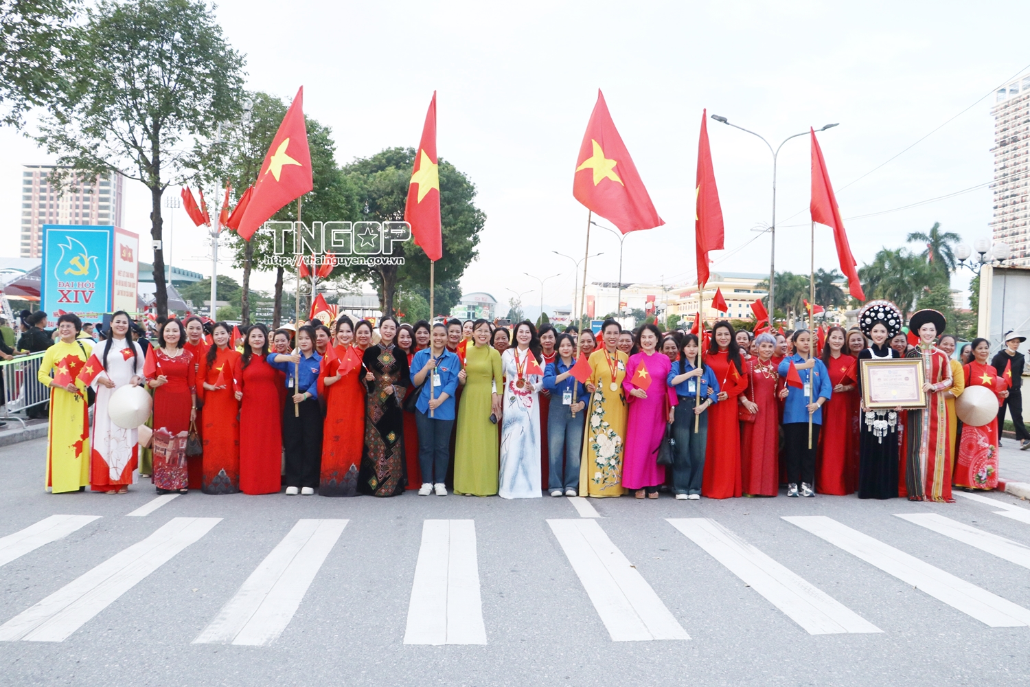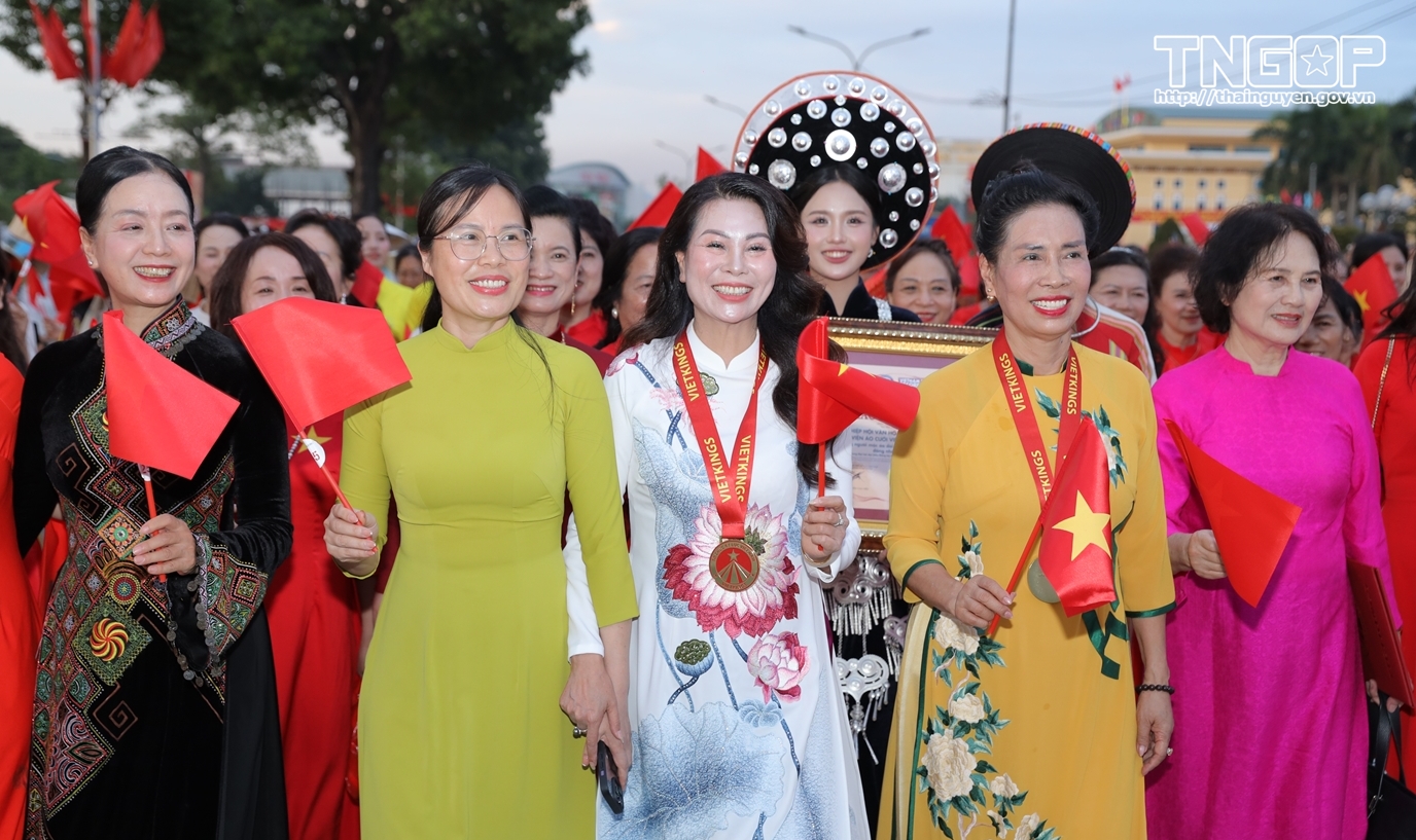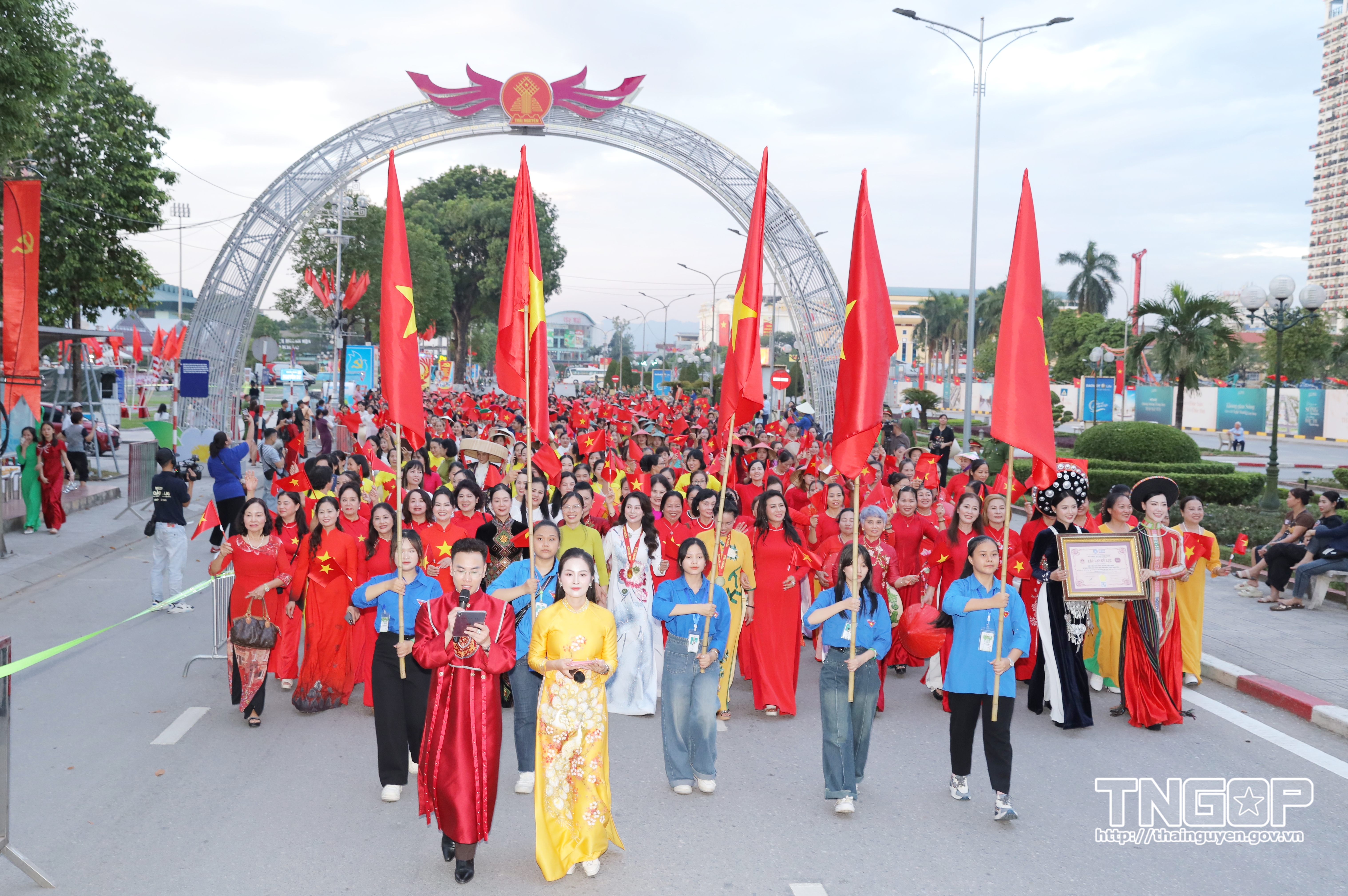 Sau phần xếp hình kỷ lục, 1.000 người mặc áo dài và các đại biểu đã diễu hành trên tuyến đường Đội Cấn - đây là thông điệp trong hành trình lan tỏa hình ảnh Thái Nguyên, vùng đất "Đệ nhất danh trà" đến với du khách trong nước và quốc tế