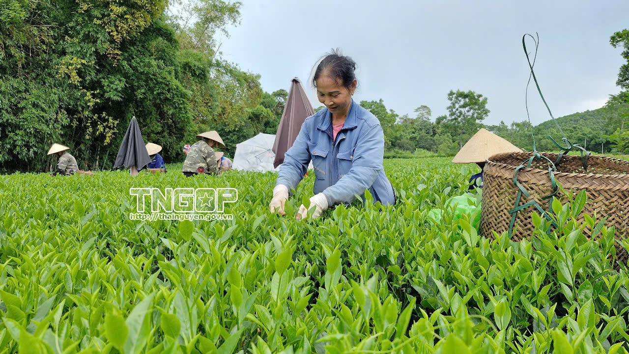Thu hái chè hữu cơ tại HTX Nông sản Phú Lương