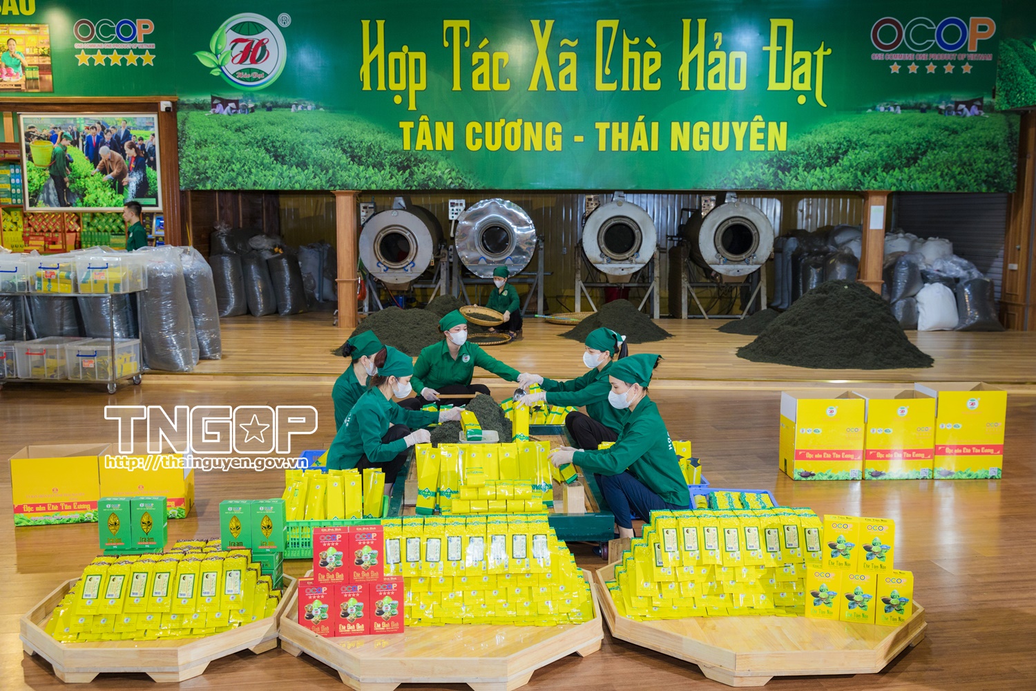 HTX Chè Hảo Đạt (xã Tân Cương) là một trong những đơn vị đi đầu ứng dụng khoa học công nghệ và chuyển đổi số trong sản xuất kinh doanh. Toàn bộ các khâu chăm sóc, chế biến, đóng gói đều được cơ giới hóa và tự động hóa với nhiều thiết bị hiện đại như: Máy bay không người lái phun thuốc, hệ thống tưới tự động, sao sấy bằng gas, máy đóng ấm tự động. Đơn vị còn áp dụng phần mềm quản lý vùng trồng, máy chấm công tự động, chữ ký số và dán mã QR cho từng sản phẩm để quản lý chất lượng. Giám đốc Đào Thanh Hảo cho biết: Chúng tôi vừa nghiên cứu và đưa vào sử dụng ống diệt men chè có khả năng điều chỉnh tự động nhiệt độ, tốc độ quay, giúp giữ được màu xanh và hương thơm tự nhiên của chè.