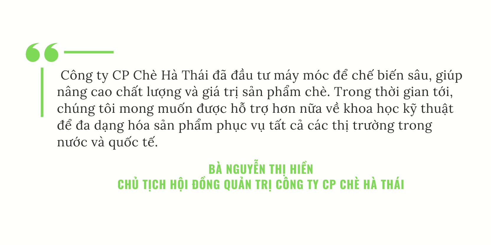 Nếu trước đây toàn bộ các khâu từ trồng, chăm sóc đến sao chè đều thủ công, dựa vào kinh nghiệm truyền thống, thì nay phần lớn đã được cơ giới hóa, áp dụng quy trình chuẩn theo VietGAP và hữu cơ. Hệ thống tưới nhỏ giọt, bón phân tự động, máy sao sấy hiện đại giúp giảm sức lao động, nâng cao năng suất và bảo đảm chất lượng đồng đều. Nhiều doanh nghiệp, hợp tác xã (HTX) cũng đầu tư dây chuyền chế biến sâu như trà túi lọc, matcha, tinh chất trà, mỹ phẩm từ chè… nhằm gia tăng giá trị kinh tế thay cho việc chỉ tiêu thụ chè khô truyền thống.