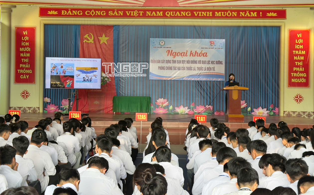 Sáng 13/10, Trung tâm Giáo dục nghề nghiệp - Giáo dục thường xuyên Định Hóa tổ chức Diễn đàn ngoại khóa với chủ đề “Xây dựng tình bạn đẹp, nói không với bạo lực học đường; phòng, chống tác hại của thuốc lá và thuốc lá điện tử.”