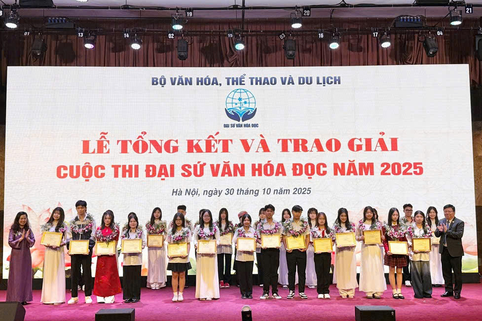 Tại Lễ tổng kết và trao giải Cuộc thi Đại sứ văn hóa đọc năm 2025 diễn ra tại Bảo tàng Hồ Chí Minh (Hà Nội), tỉnh Thái Nguyên vinh dự nhận được nhiều giải thưởng, ghi dấu sự nỗ lực trong hành trình xây dựng và lan tỏa văn hóa đọc trong nhà trường và cộng đồng.