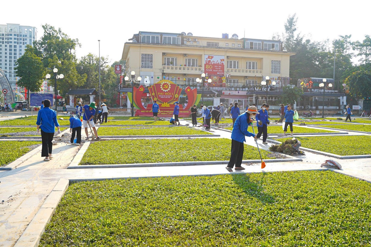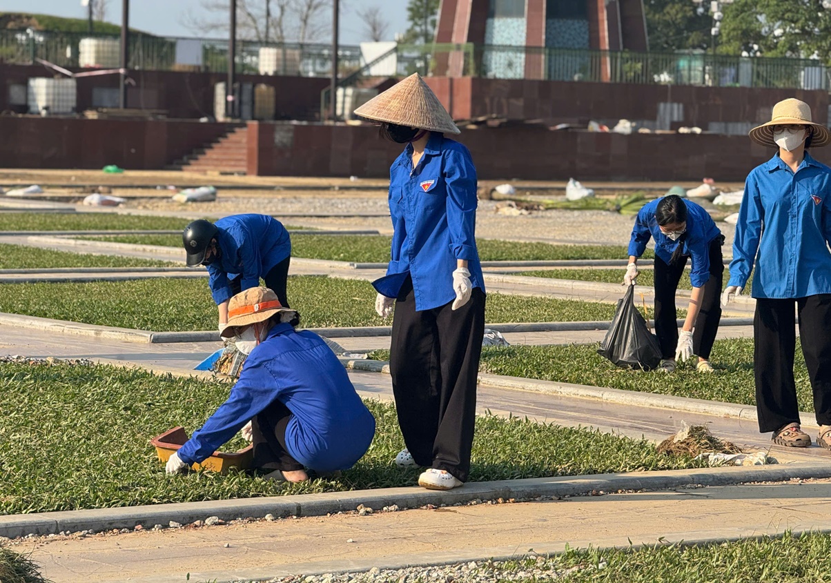 Rất đông đoàn viên, thanh niên tham gia dọn dẹp vệ sinh môi trường tại Quảng trường Võ Nguyên Giáp