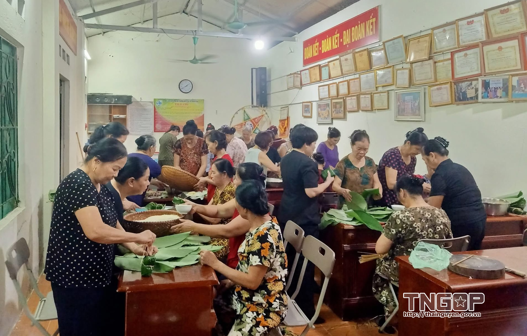 Phụ nữ phường Đức Xuân gói bánh chưng mang đến đồng bào vùng lũ
