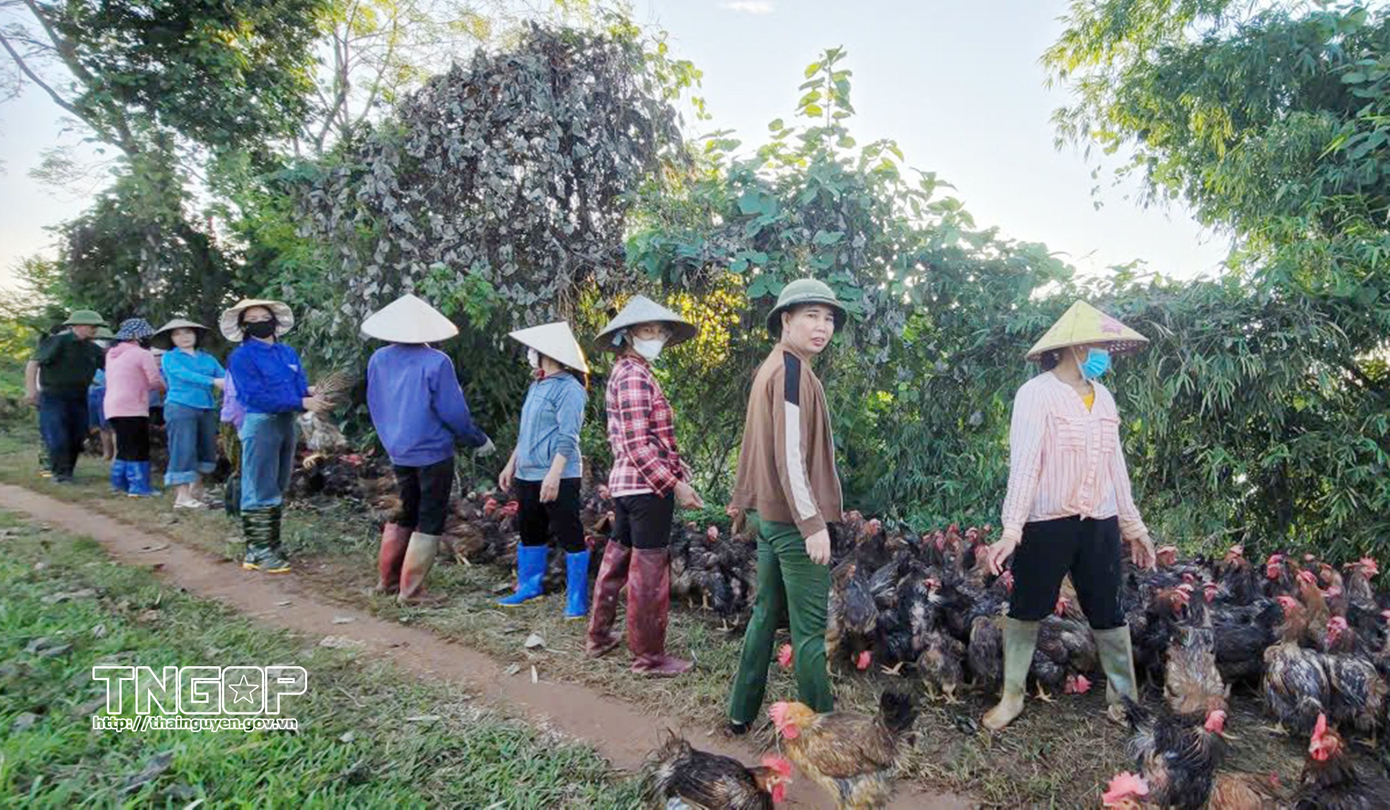 Tại xã Kha Sơn, hội viên phụ nữ được huy động để hỗ trợ vận chuyển 7 vạn con gà đến nơi an toàn