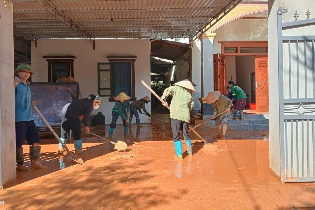 Không chỉ hỗ trợ nhu yếu phẩm, các cấp Hội LHPN còn phối hợp cùng lực lượng chức năng tham gia khắc phục hậu quả sau bão. Tại xã Nghĩa Tá, chị em cùng người dân dọn dẹp tuyến đường bị sạt lở, khơi thông cống rãnh, mở lại lối đi an toàn. Ở nhiều địa phương khác, hội viên phụ nữ cũng chủ động vệ sinh trường học, trạm y tế, góp phần giúp học sinh sớm trở lại lớp, người dân ổn định sinh hoạt.