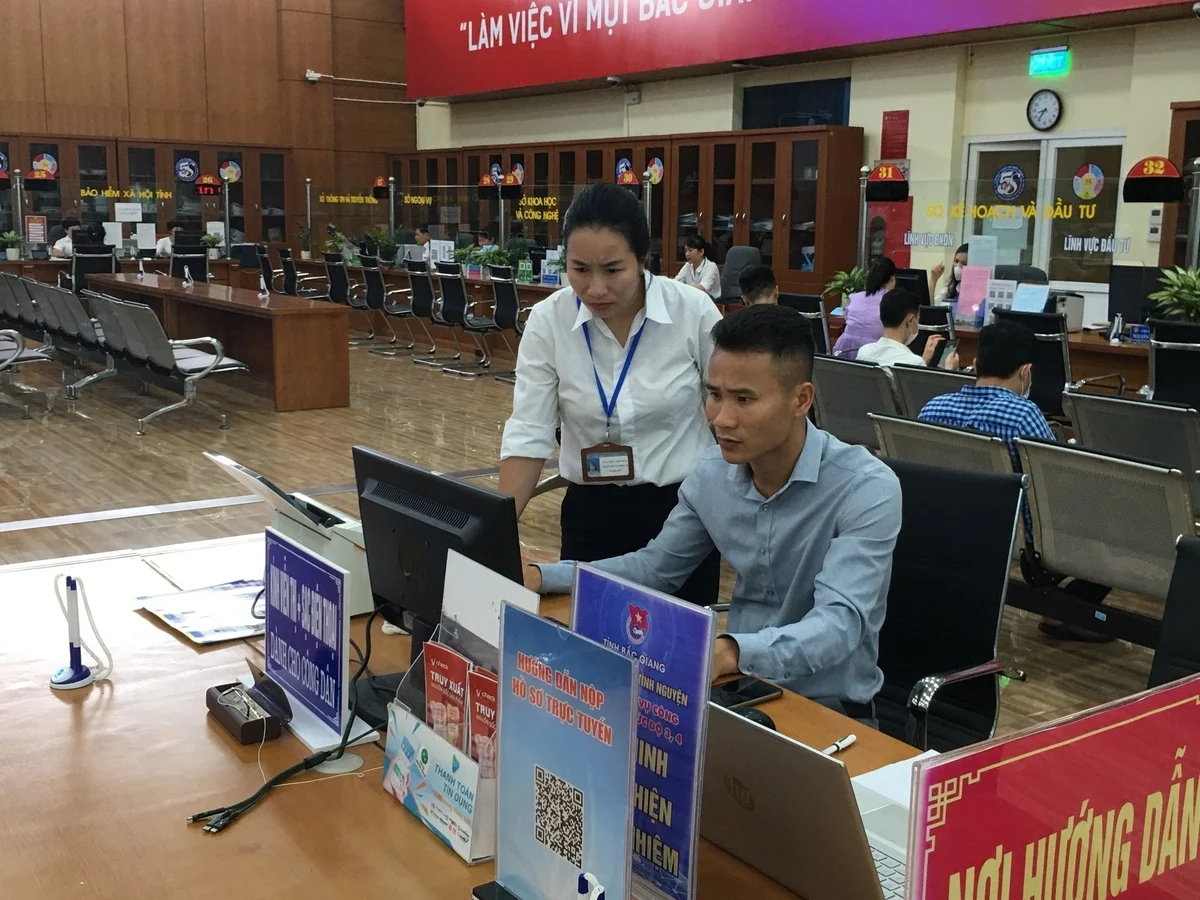 Công chức "một cửa" hướng dẫn công dân nộp hồ sơ trực tuyến. Ảnh minh họa.