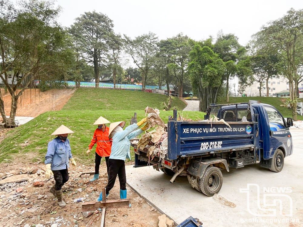Rác thải tại Khu du lịch hồ Núi Cốc liên tục được thu gom, vận chuyển đến nơi quy định.