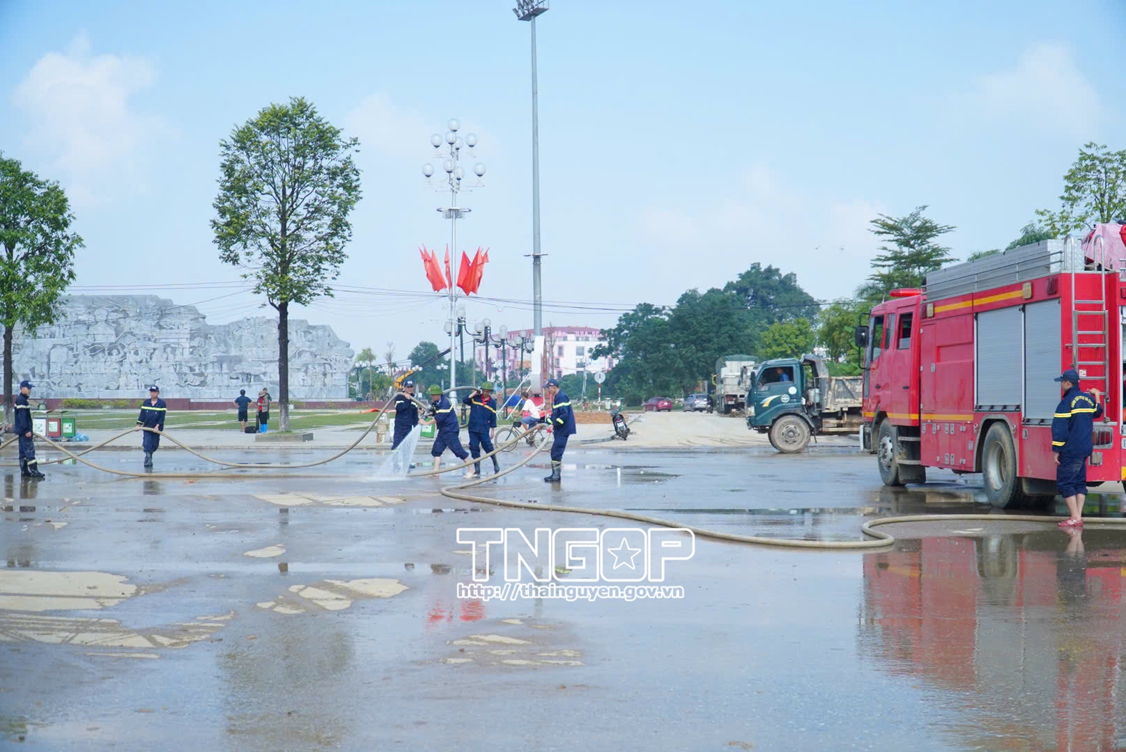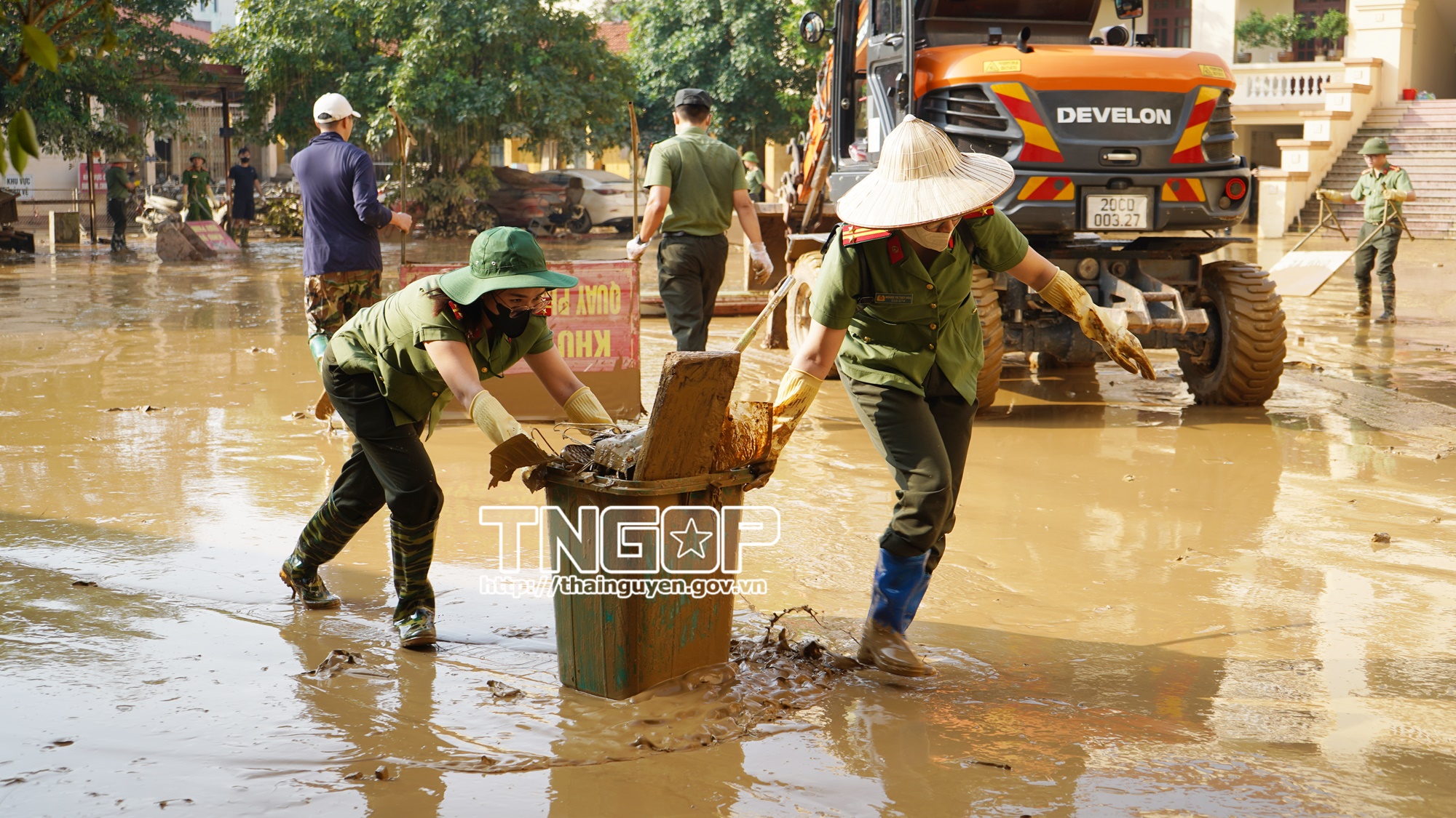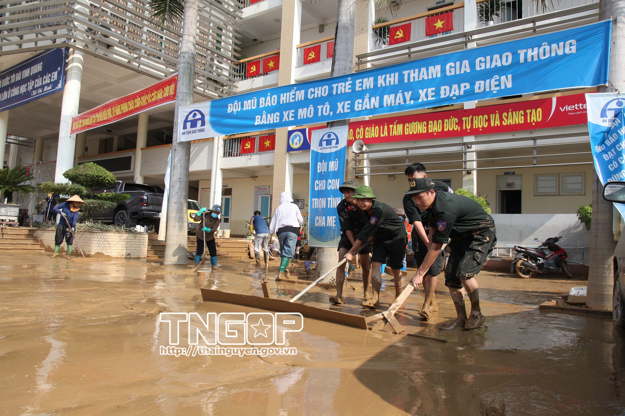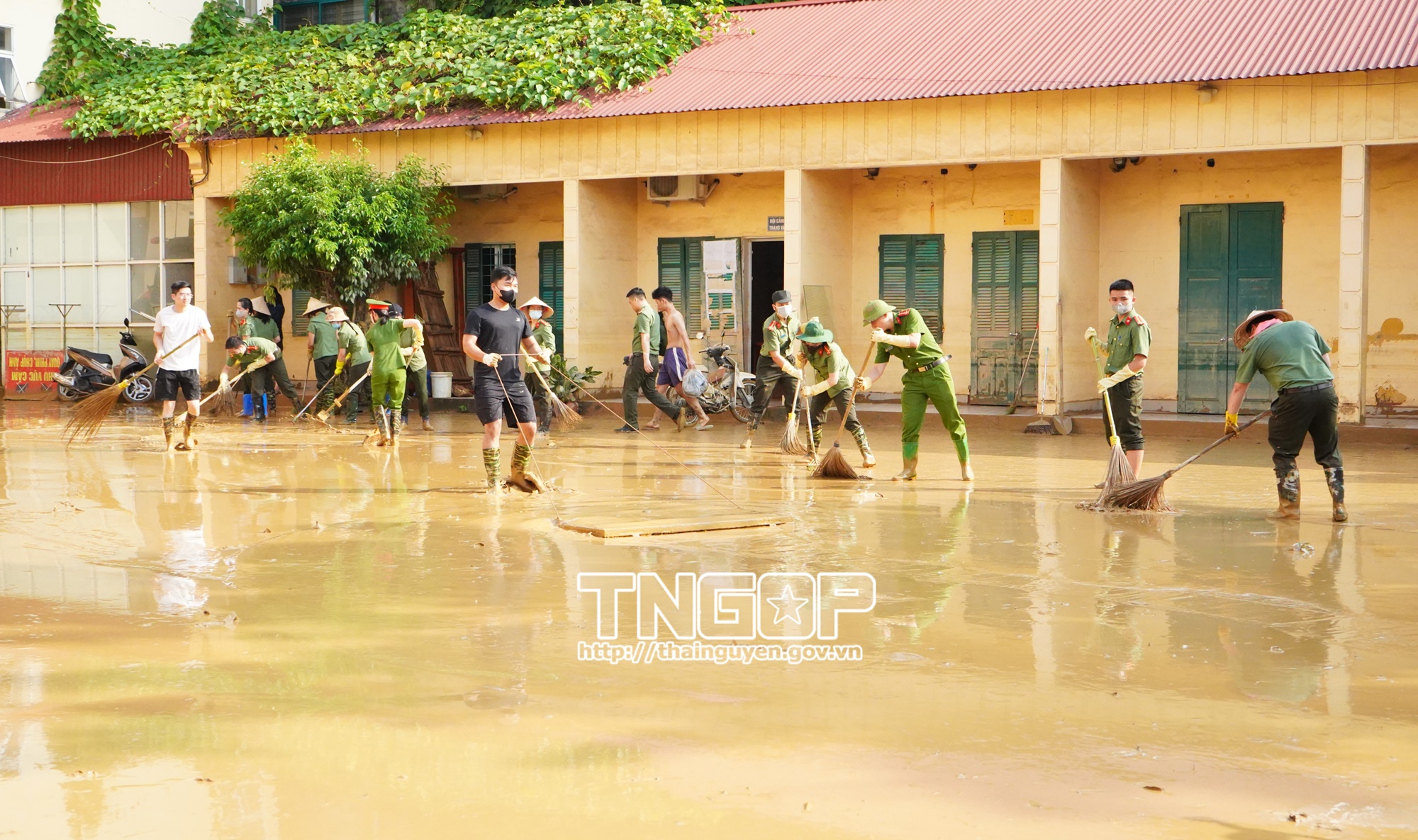 Trong những ngày qua, lực lượng Công an tỉnh Thái Nguyên, gồm Cảnh sát phòng cháy, chữa cháy và cứu nạn, cứu hộ (PCCC&CNCH); Cảnh sát cơ động và các phòng nghiệp vụ, đã huy động hàng trăm cán bộ, chiến sĩ cùng phương tiện hỗ trợ các trường học, khu dân cư và địa điểm công cộng khắc phục hậu quả mưa lũ. Các đơn vị đã lau rửa phòng học, bàn ghế, sân trường tại Trường Tiểu học và THCS 915 Gia Sàng, Trường Mầm non Điện lực Quang Vinh và Trường THPT Chuyên Thái Nguyên, giúp học sinh sớm trở lại lớp. Đồng thời, lực lượng công an phối hợp cùng người dân dọn bùn đất, thu gom rác thải, khơi thông cống rãnh tại khu vực Bến Tượng, Nhị Quý, Quảng trường Võ Nguyên Giáp, tuyến đường Bắc Kạn và phường Phan Đình Phùng, góp phần làm sạch môi trường, ổn định sinh hoạt sau mưa lũ.