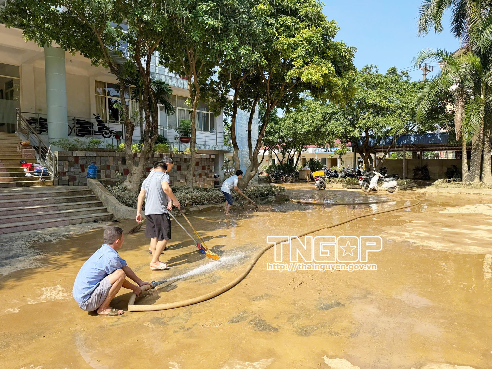 Sau ảnh hưởng của bão số 11, Công ty cổ phần nước sạch Thái Nguyên đã huy động 100% cán bộ, công nhân viên tập trung sửa chữa, khắc phục sự cố và vận hành Nhà máy nước Túc Duyên - một trong những cơ sở bị ảnh hưởng nặng do ngập lụt.