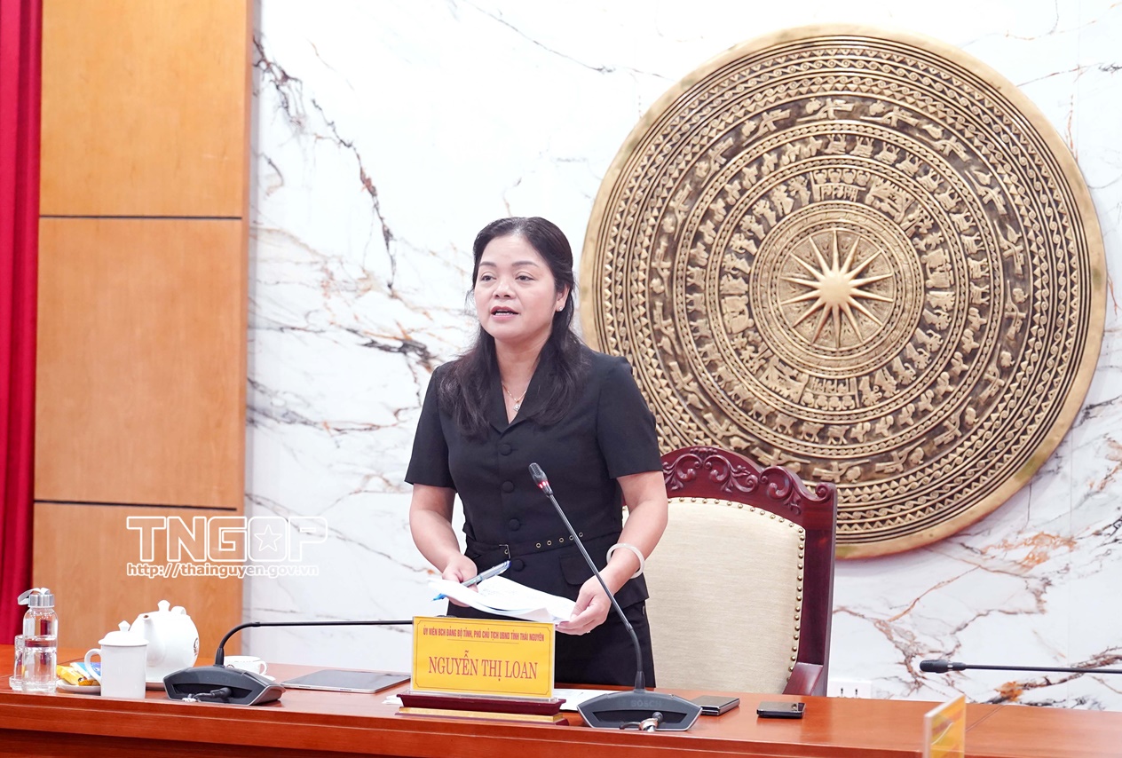 Đồng chí Phó Chủ tịch UBND tỉnh Nguyễn Thị Loan phát biểu tại cuộc họp