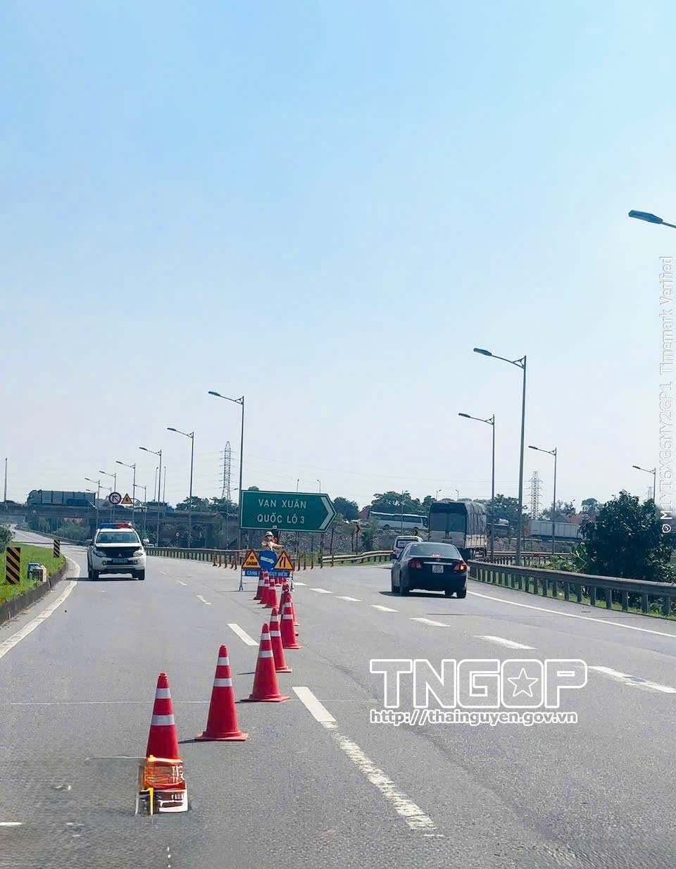 Lực lượng CSGT Thái Nguyên phân luồng giao thông trên cao tốc CT07 Hà Nội - Thái Nguyên