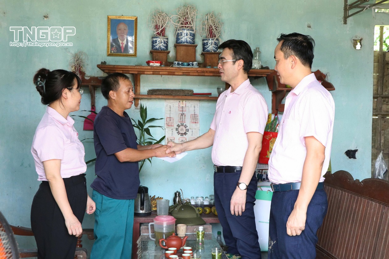 Đoàn công tác của NHCSXH Việt Nam đến thăm, động viên và tặng quà hộ gia đình ở xã Đồng Hỷ bị thiệt hại do bão số 11 gây ra