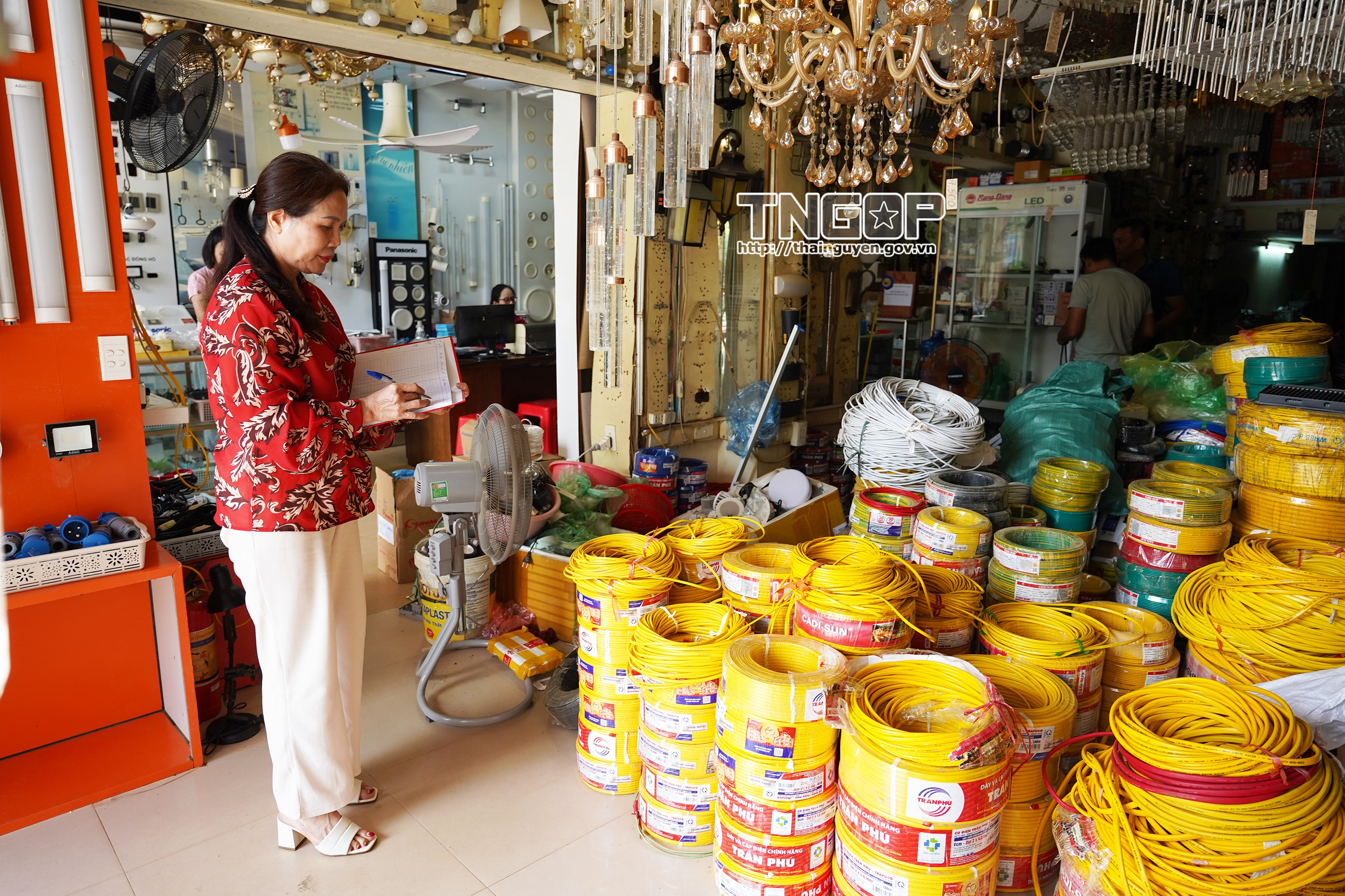 Chị Nguyễn Thị Thúy, Công ty Thiết bị điện Anh Thúy chủ động nhập hàng mới, khôi phục hoạt động kinh doanh sau bão