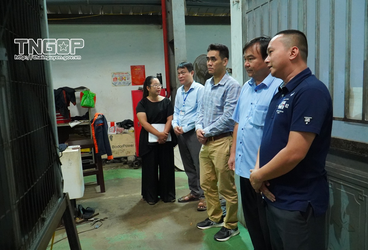 Đoàn kiểm tra thực tế nhà xưởng và máy móc thiết bị đề nghị hỗ trợ của Công ty TNHH Kết cấu thép Hoàng Triều (phường Bách Quang)
