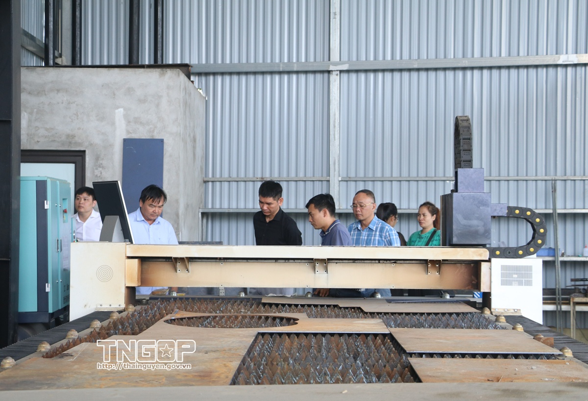 Tiếp đó, Đoàn đã nghiệm thu Đề án hỗ trợ ứng dụng máy móc, thiết bị trong sản xuất cơ khí tại Công ty TNHH Thương mại dịch vụ và sản xuất Tùng Hà (xã Trại Cau). Theo Đề án, doanh nghiệp được hỗ trợ kinh phí đầu tư 01 máy cắt Laser trị giá 726 triệu đồng, trong đó kinh phí khuyến công hỗ trợ 210 triệu đồng. Qua kiểm tra thực tế, Đoàn công tác ghi nhận hiệu quả bước đầu của thiết bị trong việc nâng cao độ chính xác và năng suất sản xuất. Tuy nhiên, còn nội dung trong hồ sơ Đề án chưa thống nhất, Đoàn đề nghị Công ty sớm hoàn thiện để đủ điều kiện nghiệm thu theo quy định.