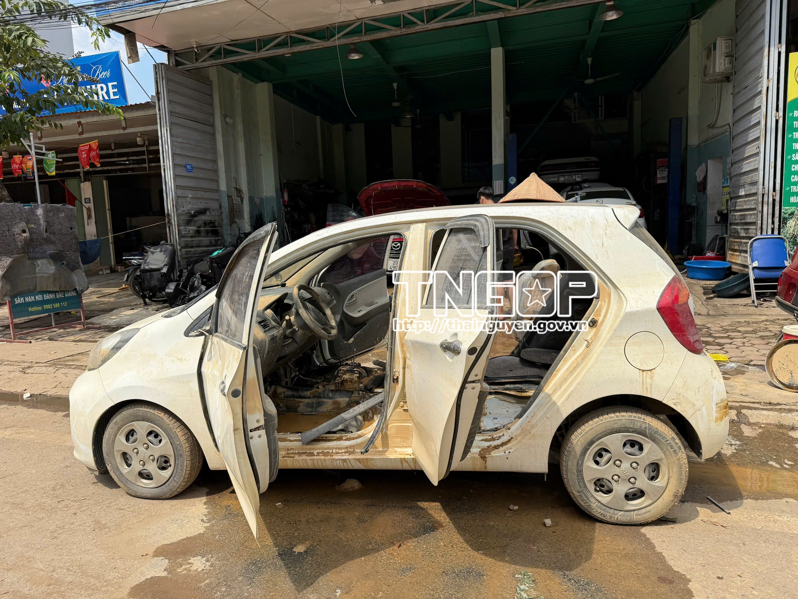 Nhiều gara xe và tiệm sửa chữa ven đường rơi quá tải khi lượng phương tiện tăng đột biến. Nhân viên đã làm việc liên tục từ sáng sớm để tiếp nhận và kiểm tra xe bị hỏng do nước lũ.