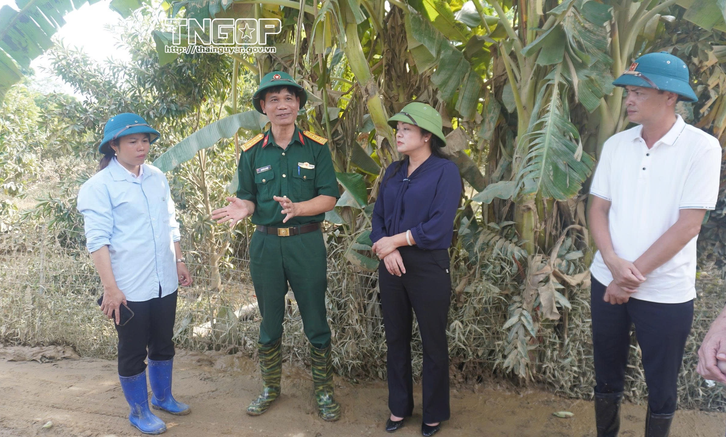 Phó Chủ tịch UBND tỉnh Nguyễn Thị Loan kiểm tra, chỉ đạo khắc phục hậu quả bão số 11 tại xã Tân Khánh và Kha Sơn