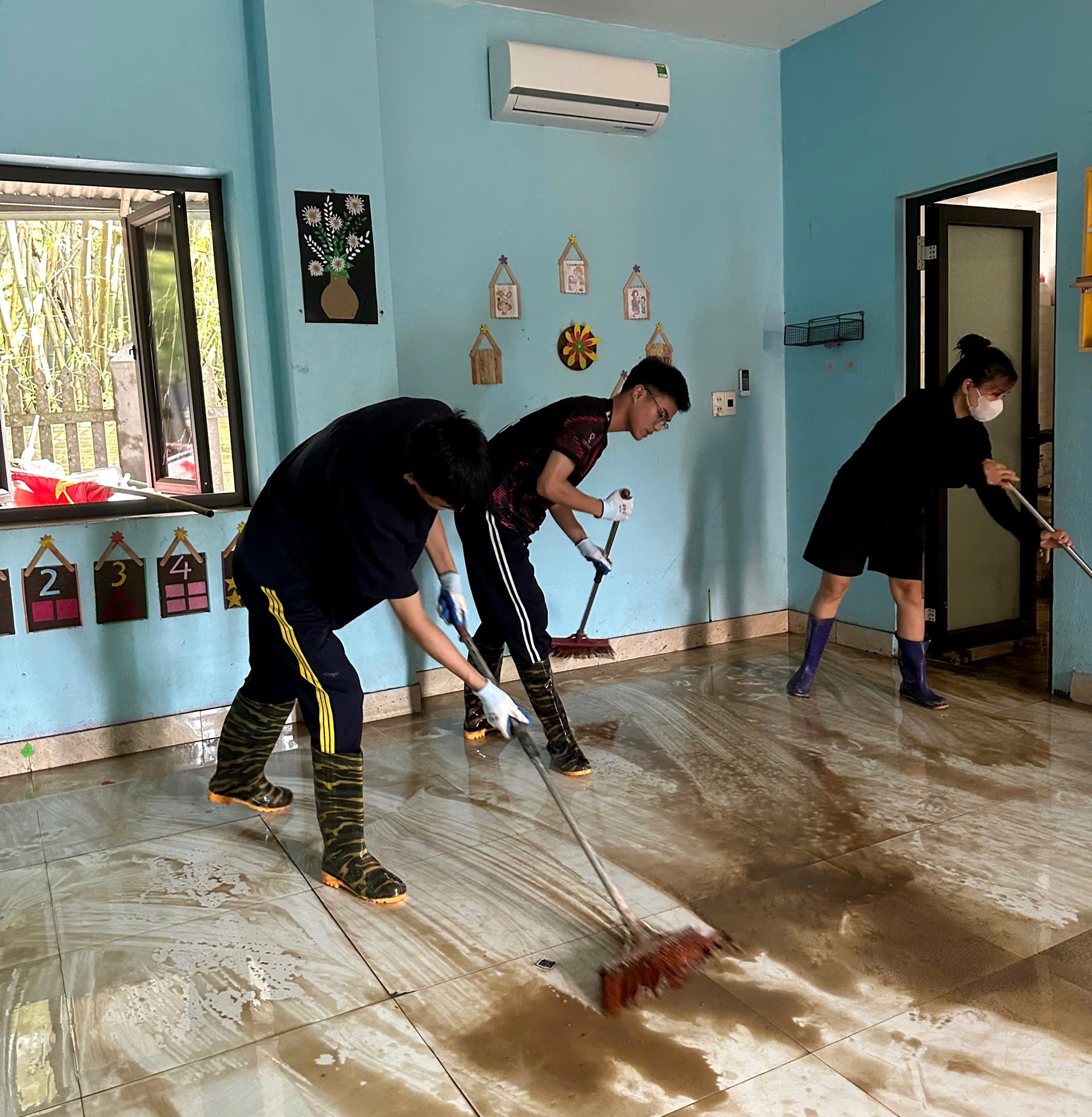 Dưới đây là một số hình ảnh Hội Sinh viên Trường Đại học Kỹ thuật Công nghiệp hỗ trợ bà con bị ảnh hưởng do mưa bão:
